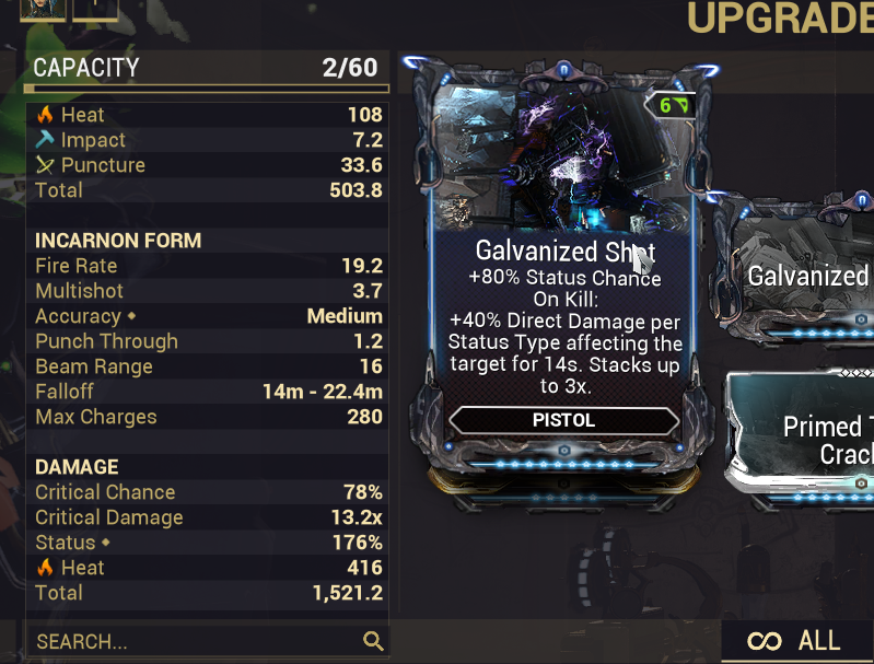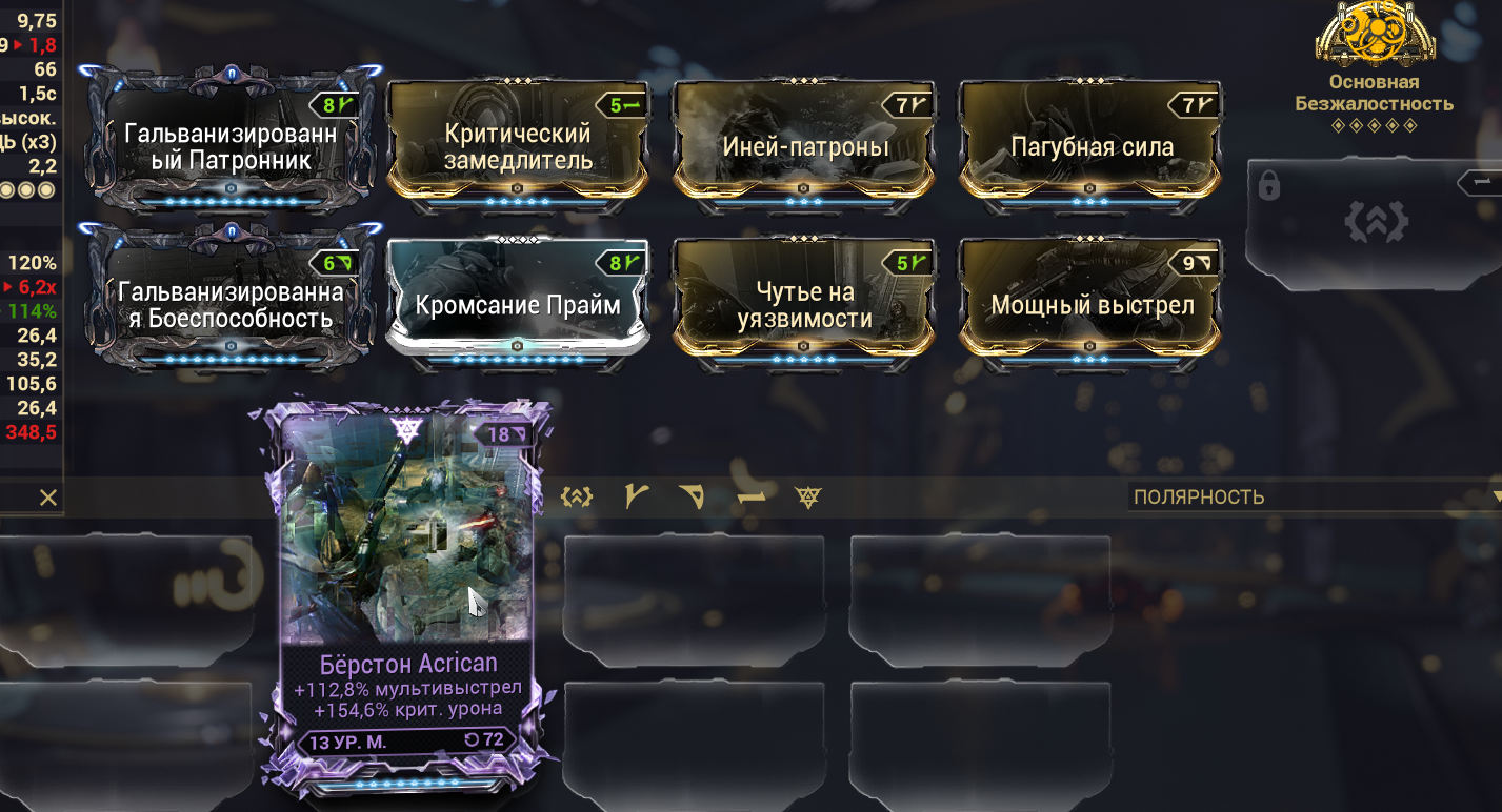 Ты мог заметить, что во всех эйдолонских билдах даже выкинуты гальванизированные моды. Их не на чем стакать. И выкинуты все моды на статусы. Они не применяются. Аколитские мистики идут нахуй, их тоже не на чем стакать. Можно разве что воспользоваться какой-нибудь "основной пулевой бронёй" или мистиком на "крит вторички с комбо милишки/сверхщитов".