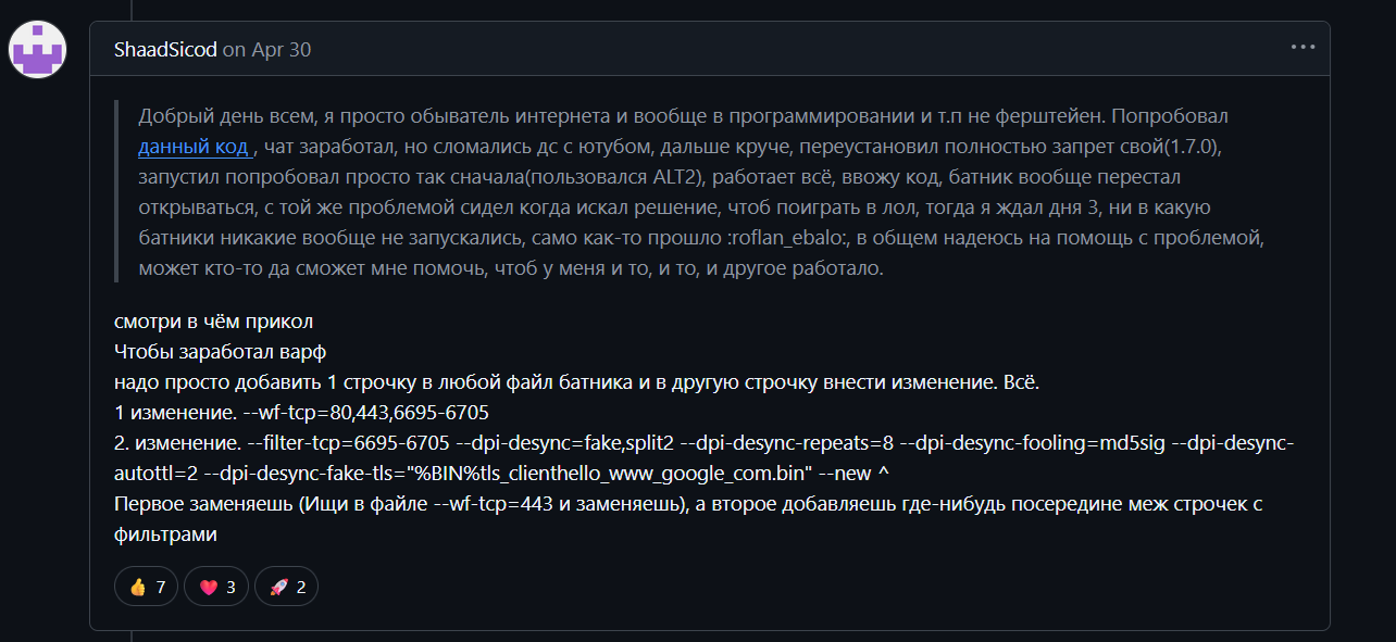 Решается добавлением строчек в zapret (если вы не знаете что это такое я вообще не понимаю как вы ещё в луже не утонуле, идите мимо этого поста)