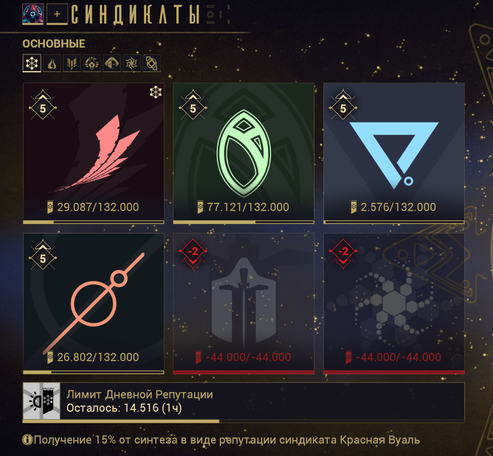 >>49904348 То, что у тебя на пикреле, было возможно до середины 2024 и т.к. у тебя прокачка осталась, то тебе выдают миссии на них. Новым аккам возможно апать за раз только 2 синдиката из этих. Изменили систему прокачки. Теперь не нужен сигил. Нужна присяга и кому присягнул идёт репа только ему и тому кто у него в союзниках на 50% максимум. Даже если 3й синдикат нейтрал, то ты не сможешь как раньше нацепить его сигил и апнуть мальца. Ты его даже на 1й лвл не апнешь теперь. Нужна присяга ему или его союзнику. Так что при новой системе только 2 активных возможна, мало того 2 в полный минус уходят, один нейтрал будет и 6й будет на 50% в минусе.