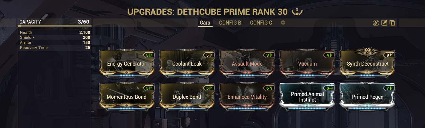 Алсо. Открою очень страшный секрет. Защитный перекат не нужен ни одной рамке чтобы соло стоять девяток. Катализатор не нужен ни одной рамке, чтобы соло стоять девяток. Броня/щиты не нужны ни одной рамке (за редчайшим исключением лавоса и инароса) чтобы соло стоять девяток. Личерали единственный полезный и юзабельный защитный мод - уверенная стойка прум. В эксилус слоте, ага.