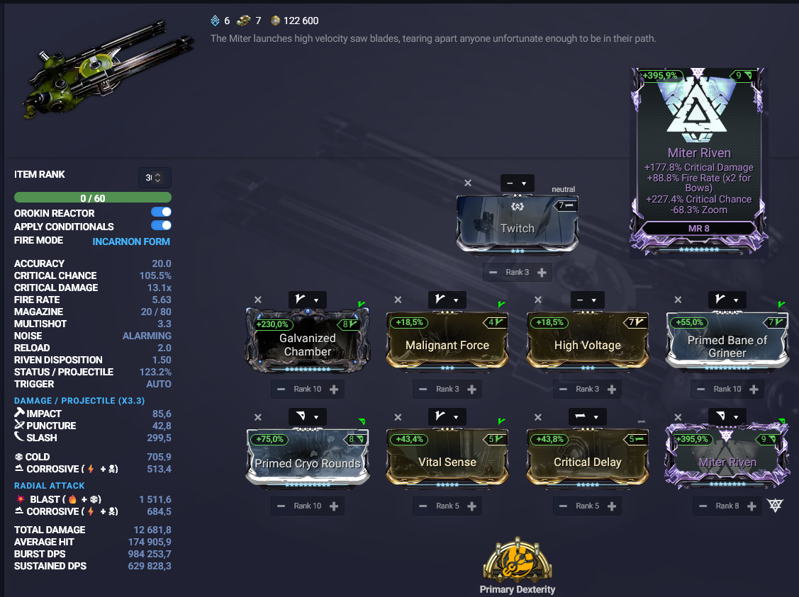Если крутить колбасу на оверфрейме, то мой билд теоретически в 2 раза ебучее, чем билд протыка с тем же ривнём. Но он свой использует против демиков на лвл капе сбоя. Я же гоняю обычное сп, ну архимидию макс. Наверно стоит оставить мой как есть. Но я еще захотел меха сет подергать. Вроде как митра хороший выбор для него? Огонь и слэш, как у протыкана, сделать. Но есть и минус: нельзя взять парис инкарнон, чтобы дать собаке синергию крита и статуса с него. Но альтернативы какие хз, эпитаф? Или просто забить хуй на парис? И так наверно оверкил для обычного сп? Может эндурку постоять? Никогда не пробовал, скучным кажется.