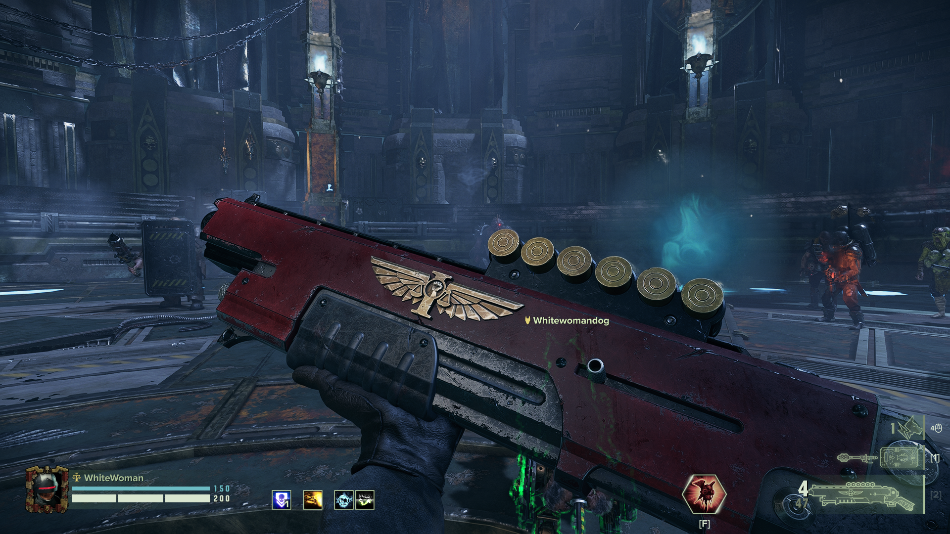 >БОЛТЕРЫ блять, за хранение одного патрона от которого — уже смертная казнь во всех мирах Империума. Ну это безотносительно того, что от одного выстрела болтером без силовой брони оторвёт нахуй руки