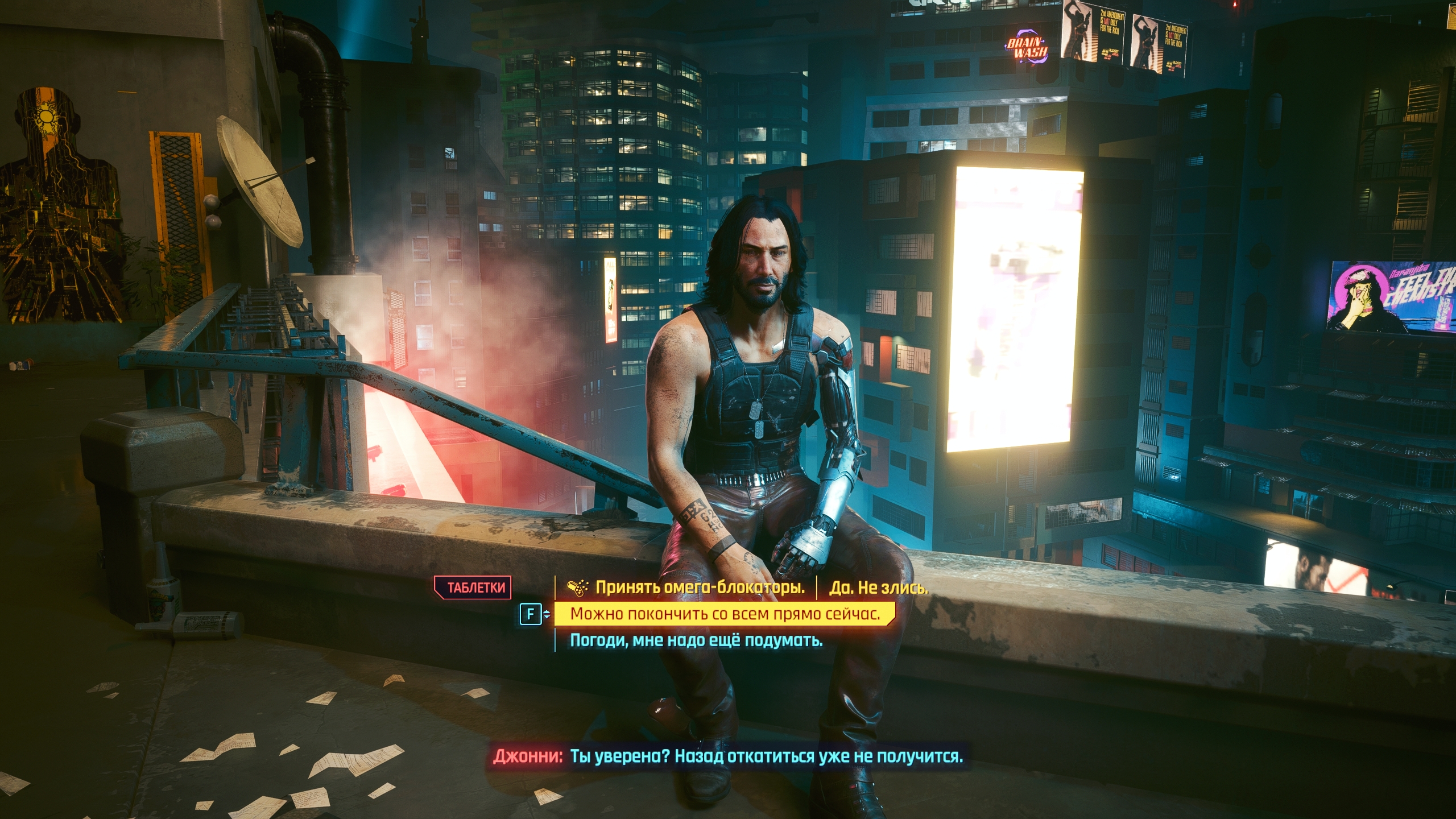 Смотрим дальше. Концовка с передачей тела Джонни, в профиле отображается статус репутации "всё ещё не легенда". То есть пробраться в башню Арасака, убить там всех, кого можно, запинать Смешера и выбраться обратно - недостаточно, чтобы стать легендой. Из этой концовки запоминаем ещё одну вещь, а именно Джонни покупает распиздатую гитару за 5к эдди. Теперь вспоминаем момент с первой встречей Евродина. Когда осматриваешь его гитары, Ви говорит, что это стоит дохуя, на что Джонни поддакивает - у нас столько никогда не будет. При этом пиздатая гитара стоит 5к эдди. Даже если гитары Керри в десять, в сто раз дороже - это всё ещё небольшие деньги, но только по меркам геймплея. То есть сюжетно Ви конченный нищеброд, о чём говорит хотя бы уведомление об очередной просроченной квартплате на пекарне. Запомнили эту хуйню. Теперь концовка, где Ви оставляет тело себе. Статус - легенда Найт Сити. То есть Ви продолжает карьеру и не сбавляет обороты. Да, харкая кровью и ловя приходы. Но успешно делает дела, от чего скулит Джуди, например, если её романсить. Живёт в шикарной квартире, летает на ави, а Деламейн говорит, что у Ви "неограниченные ресурсы". Карьера идёт охуенно. То есть этот инвалид может творить разную хуйню, даже находясь одной ногой в могиле.