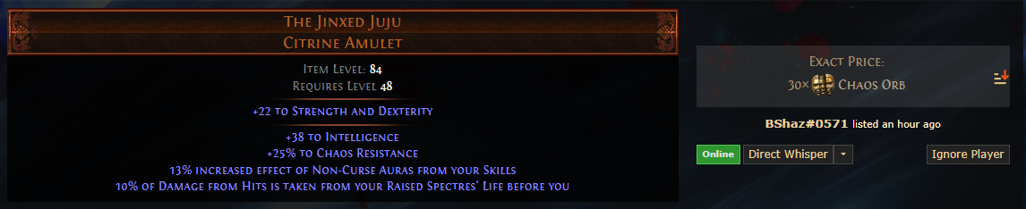 >>49956898 нахуя ты щит залинковал туда он не обязателен просто покупаешь самую хуевую марионетку на трейде за 3с https://www.pathofexile.com/trade/search/Mercenaries/oX67EpqIl жмешь правую кнопку мыши у тя под ногами труп жмешь кнопку А и жмешь скилл призвать спектра далее спектра убираешь нахуй с панели скиллов чтобы случайно не нажать далее в тот момент когда тебе нужна аура ускорения просто жмешь по ней и она действует секунд 10 я не помню точно - спектр подыхает - респается - жмешь по новой ауру когда нужно быстро бежать и тд