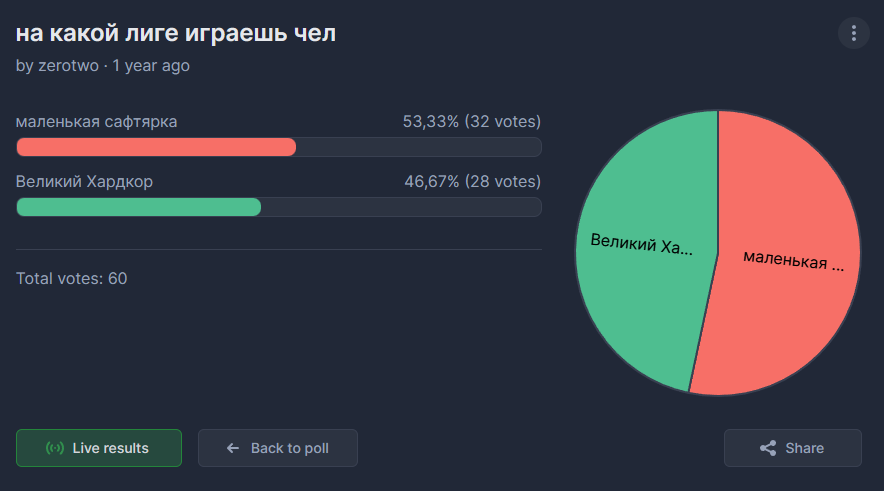 в том то и дело что живых людей играет много а дошискот просыпается каждые полтора часа по будильнику чекнуть курс рубль/ебло и ливает практиковать праноедение лишь бы не РАБотать