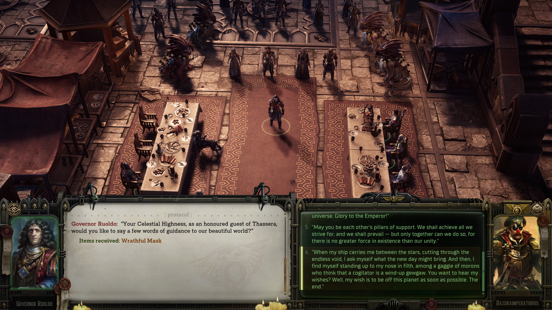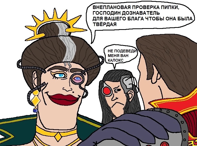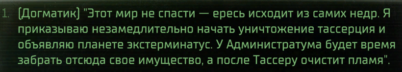 >"Передача губернатора прерывается официальным запросом с планеты. Власти Идекса утверждают, что с вами на контакт пытался выйти член секты аристократов-еретиков, сбежавший из-под надзора стражи. Во имя Империума правительство планеты просит немедленно уничтожить предателя." >"Вышедший на вашу персональную вокс-частоту губернатор шепчет, что действующая власть Идекса — не те, за кого себя выдают. На планете произошел бунт, у власти встала еретическая секта. Губернатор умоляет немедленно нанести удар по дворцу правительства. Без верхушки новая власть не сможет удержаться у руля!" И кому верить? Где опция разъебать обоих?