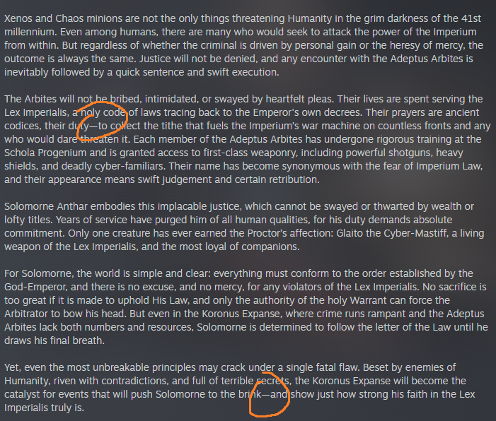 КАЖДОМУ ВАХАЕБУ, ВАХАФАНУ, ЗАЛЕТУХЕ И ЗНАТОКУ ЛОРА ЧИТАТЬ ВНИМАТЕЛЬНО: Совокоты известны крайней разношерстностью своих сюжетов — в одной игре может сочетаться как аниме/трансухи/соя так и самые базированные персонажи. А также известны своим вольным отношением к сеттингу: с Вахой это может вызвать горение жоп. Воспринимайте Rogue Trader как неканоничное произведение или фанфик. Хотите 100% следования "канону" — идите почитайте рулбук.
