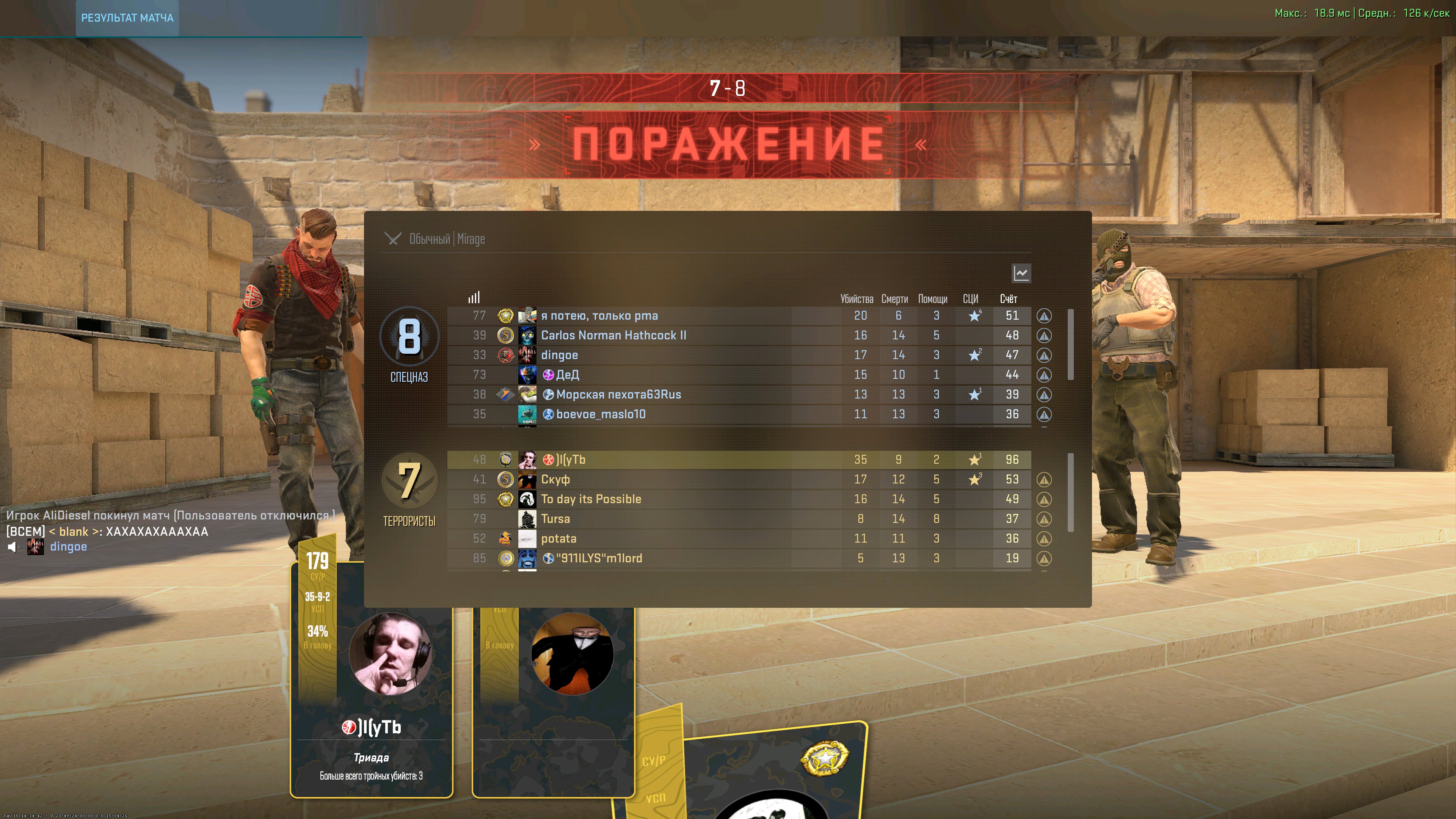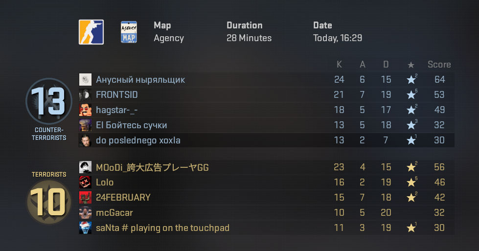 Начали играть, критикую чувака за его кривую игру, что он вместо того чтобы делать что-то, где-то стоит дрочит, а не помогает и мы проигрываем. А я на последнем месте, не могу разыграться, сдыхаю по тупому все время. Он мне, типа, хули ты там пиздишь лоу таб. Конец игры, с допами выиграли, я на первом месте - 29 фрагов, а он на предпоследнем. Ебало его можете представить.