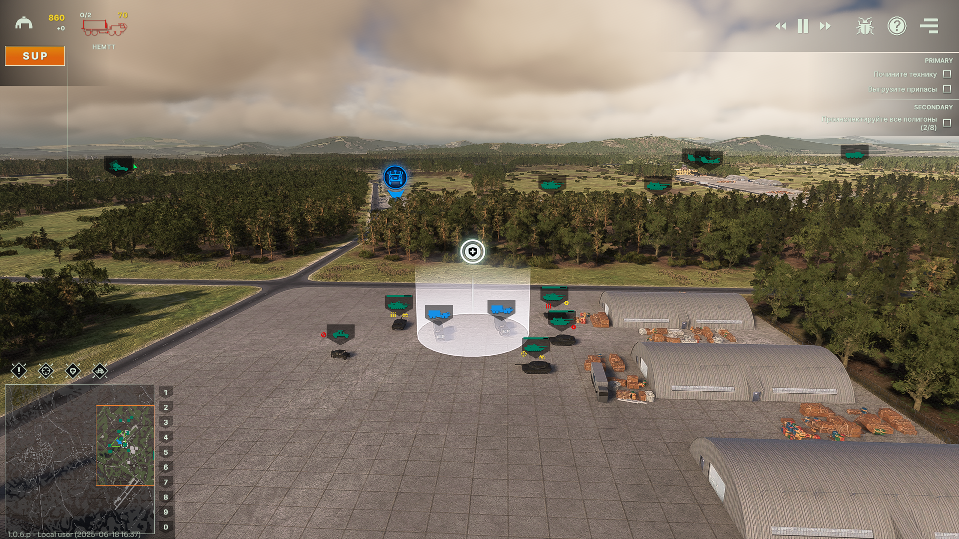 У меня есть проблема с приказами. Я ещё не понял, в чём именно дело, но иногда юниты начинают двигаться в рандомном направлении. Вот сегодня смотрю — гаубицы едут в сторону фронта. Обвёл их, зажал шифт — вейпоинт стоит на отряде пехоты на передовой. Я вообще туда никакой юнит не посылал.