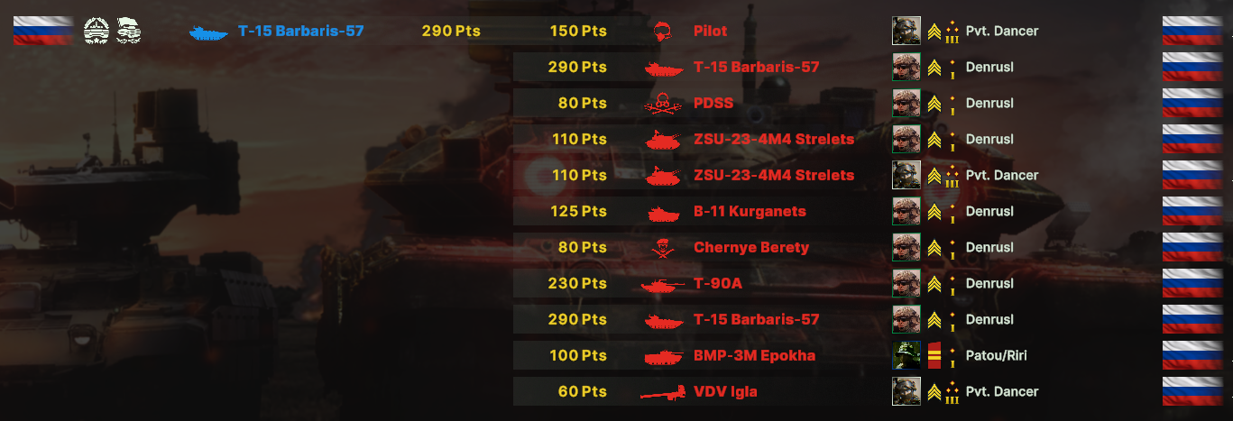 Знаете что я скажу? Пиздец РФ переапана, лол. И ебал я играть зеркало РФ. Как же у меня щас дрожали рученки когда мы на топорах рубились мои Т-90 против его Т-14. Но у меня была поддержка в виде 4 взводов карнетов.