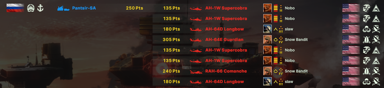 Поддерживаю амерошиза отчасти, С-300 с Тором это пиздец. 8 ПРР идут просто нахуй, долетит максимум 1-2, обычно вообще 0 нахуй. У чуваков щас как минимум 6 Ass-300 стояло, я в ахуе был просто. Су-24 конечно ебал как кулак самого Бога, но это был исключительно суицидный забег, а на мой МиГ-35 им было категорически похуй, приходилось их с Торнадо выбивать чтобы хоть как-то реализовывать воздух. Про вертолеты вообще вопрос не стоит, я их после первых минут 15 просто перестал вызывать. Патривроты и ЛАВ-АД конечно тоже мозги могут пропарить но сука не на столько. Даже не смотря на то что Патриоты из-за их паттерна запуска ракет сбить ПРР сложнее Амеродрочеры как будто их в меньшем количестве что-ли берут, не так охуеваешь с количества ракет ПВО в воздухе. Против русских всегда у каждого в деке есть как минимум одна 300 и парочка Торов/Буков/Ос не говоря уже про ПЗРК которого на точках как говна за баней.