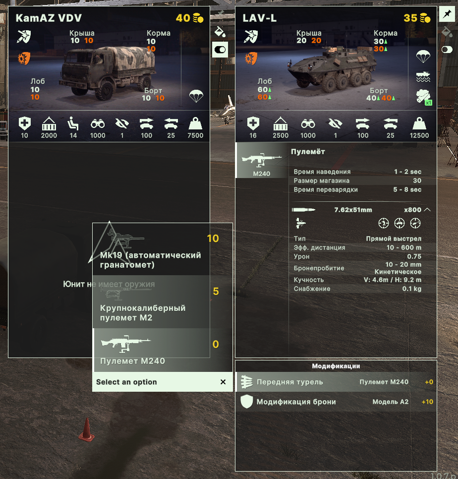 >>49941077 >DДВшники в количестве пяти мужиков с хуёвым оружием стоят столько же, сколько БМП-2, вызывает вопрос: а нахуй мне вообще брать этих ВДВшников Потому что БМП-2 живет ровно до первого расчета вражеской пехоты, показавшейся из-за угла. Ну тоесть минут 5 после вызова. А подкравшиеся среди зданий ВДВ могут быстренько зачистить ближайшее здание от разведки противника, или бодро устроить подскок на вертушках на точку, если долетят конечно.