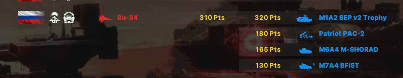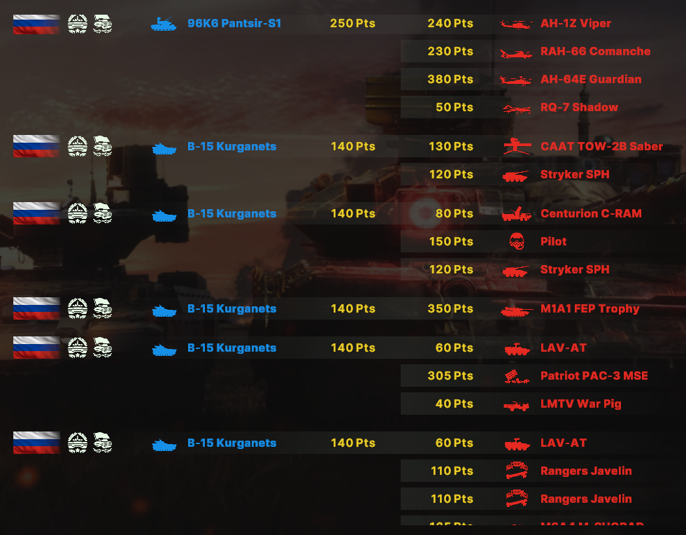 Танки у РФ ? Дороже блять. Сраные танки на РФ. Это же база подобного баланса - дешевые советские танки, чтобы набигать на ламанш. Но вместо этого у меня катаются панцири, которые ссыкливо прячутся от вездесущих абрамсов, которые валят тысячами.
