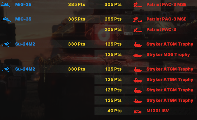 >>49968991 >800-1100 поинтов в ПВО Че-то когда Омериканцы когда столько поинтов ставят в ПВО душат они не так сильно и хотя-бы парочка Патриотов все-таки отправляется на свалку. >>49968944