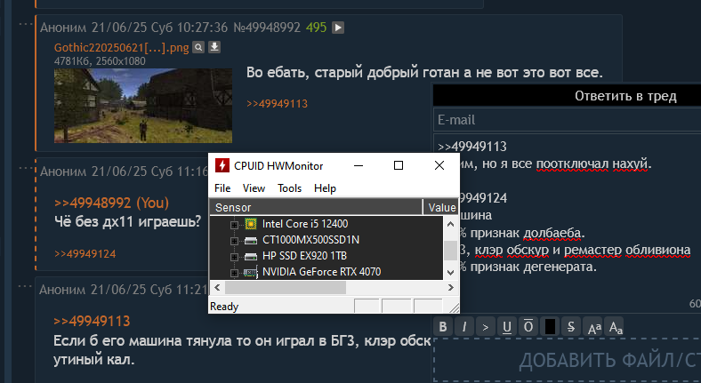 Установил первую Готику со Стима и в ней не отображается мониторинг - что Афтербернер, что стимовский который сейчас в бете доступен. Точнее как - если запустить классическую версию с систем паком, то все ок. А если запустить юнион, то с ним Афтербернер отображается в окошке с выбором модов. Что наклацать чтобы починить?