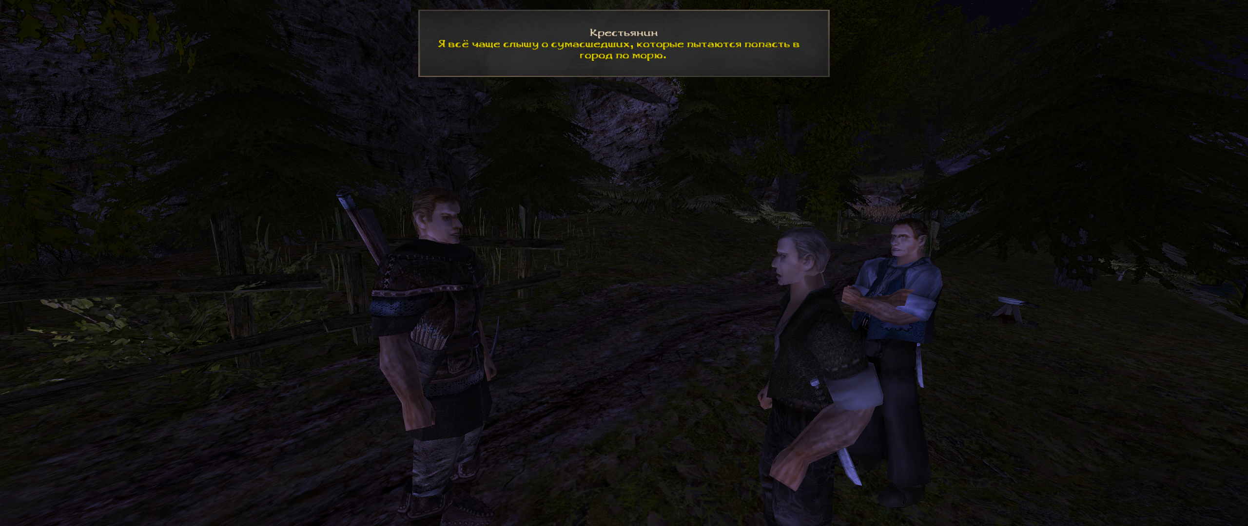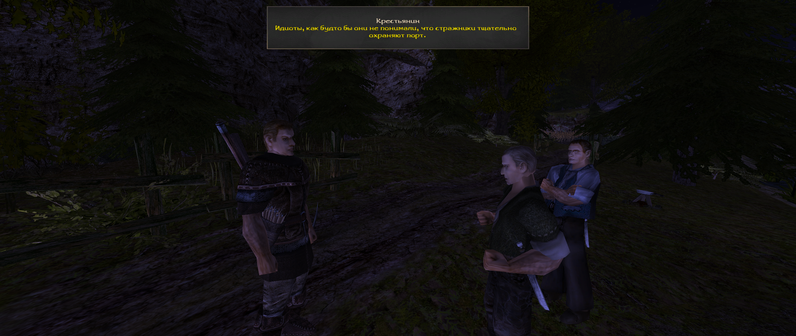 Да вот только каждый второй НПС жалуется, что корабли больше не приходят и последний прибывший - это фрегат паладинов, все. Джек, Мо, просто челы в порту. Энивей, говорю же, весь прикол в том, что ОНД взяты из сиквела и не особо переделывались, в сиквеле они пришли на своих двоих, так-то сам король прибыл в долину рудников на разборки с демонами, они должны были тусить в форте на горе, где с Лестером забираем юнитор. А потом сиквел свернули и стали разрабатывать г2, где Хоринис внезапно стал островом, но многие моменты остались ещё с сиквела, не переделали. Вроде ОНД или тех самых драконьих снепперов, почему-то их не было в г1, а в г2 вся долина усеяна, опять же в сиквеле все пояснялось демонической мутацией и драконьи снепперы суть демонические снепперы, черный тролль - демонический, а ещё "синий" варан, луговой падальщик и облезлые волки, которых порой можно встретить в модах. Даже пумы, которых таки не завезли в НВ, тоже демонические из сиквела, жесть.