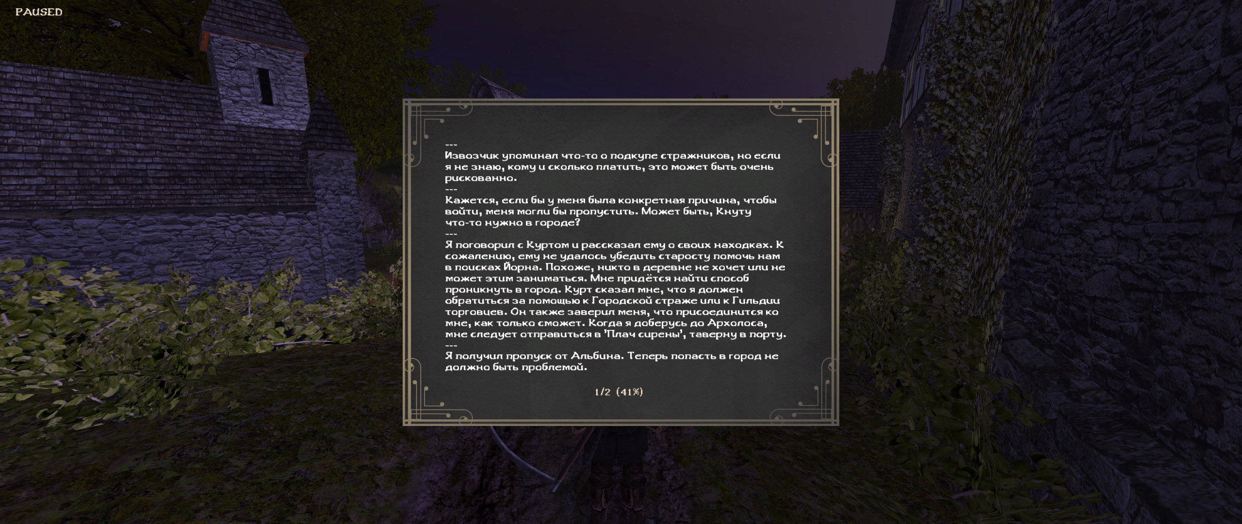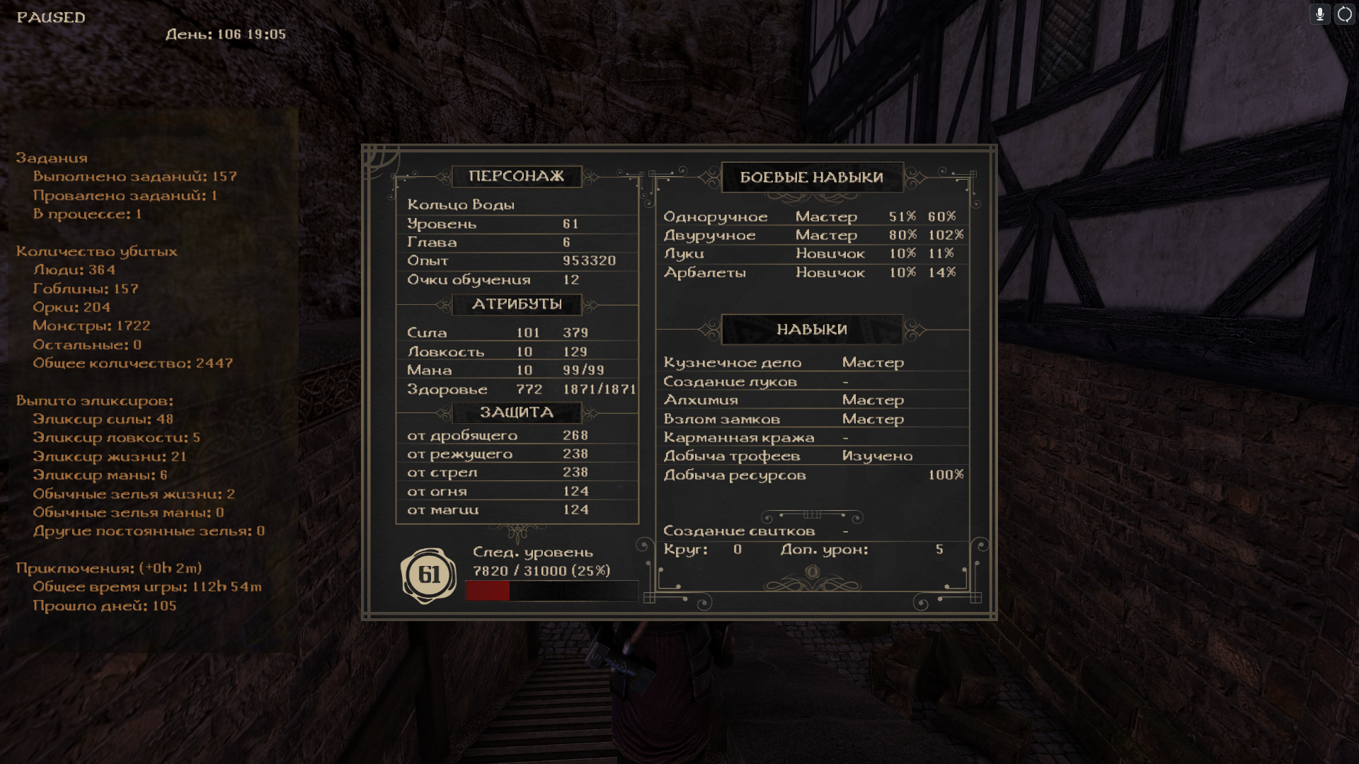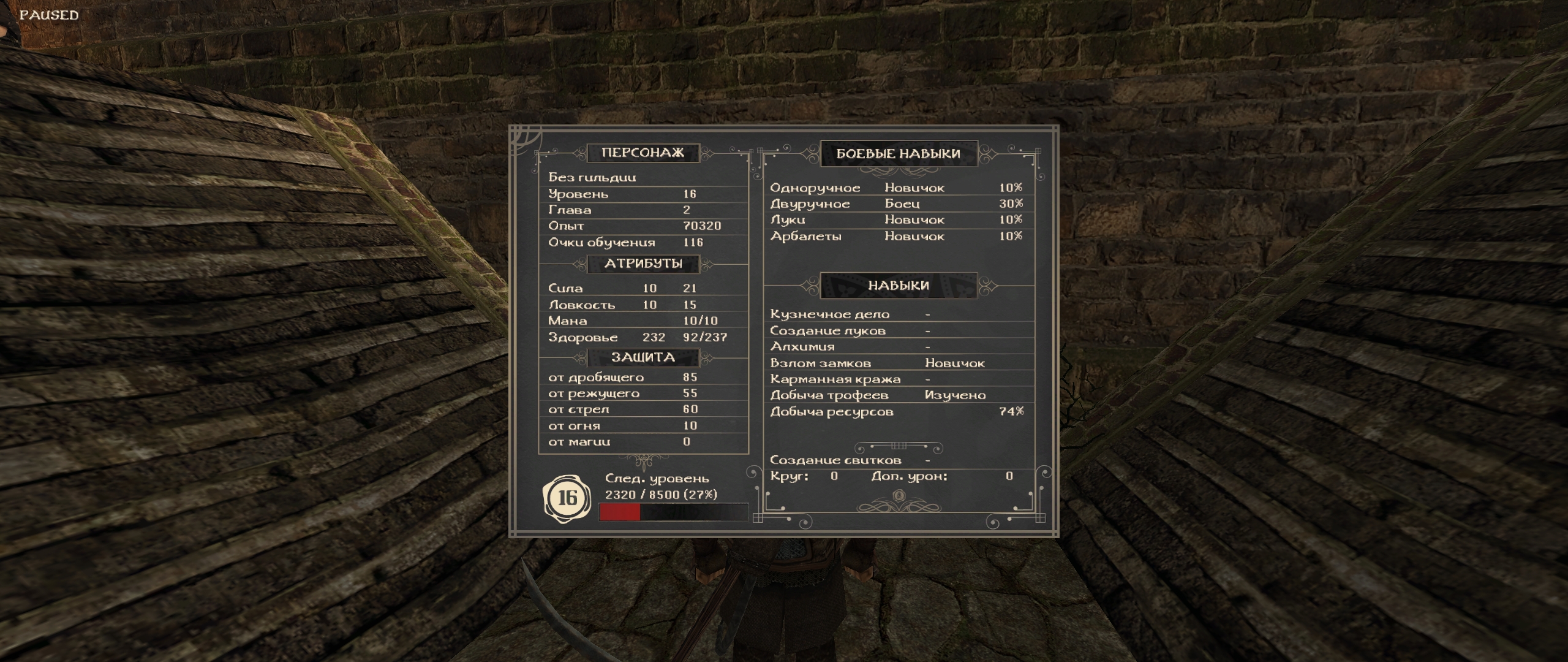 >>49960997 Ну вот, полчаса сжималось лол. В этот раз пришлось в порту бить всех шпагой, Альрик не дался. То ли это из-за усиления, то ли щита, то ли я что-то забыл, но он просто 10 раз подряд меня положил, как будто у него анимация ударов быстрее обычного или он просто игнорирует мои атаки. В общем вернусь к нему позже. Пока получил доступ к мастерам и отправился обратно за город за шкурами и квестами для гильдии воров.