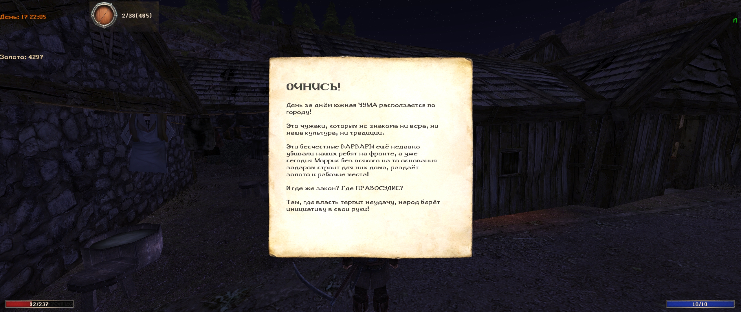А ещё старую и свободную шахту васянов, точно, какого черта вообще, старую вообще затопило нафиг, свободную тоже завалило взрывом от барьера. Тупо сделали, да и калтент там ещё тот, очередной каловый данж с васянскими в говне измазанными скелетами, фе. Форт с паладинами, остров Адармос, каловая локация с друидами и ферма - ок, пусть будут, они небольшие и это не данж говна. В принципе, что-то такое пилится на возвращение 1.1, некие поляки делают, без говняка, без боссов с 100к+ здоровья, без каловых локаций, данжей и прочего, что добавили васянские балансы и в извращении 2.0, убрали 7 главу и вообще, судя по описанию, будет вполне неплохой модецкий