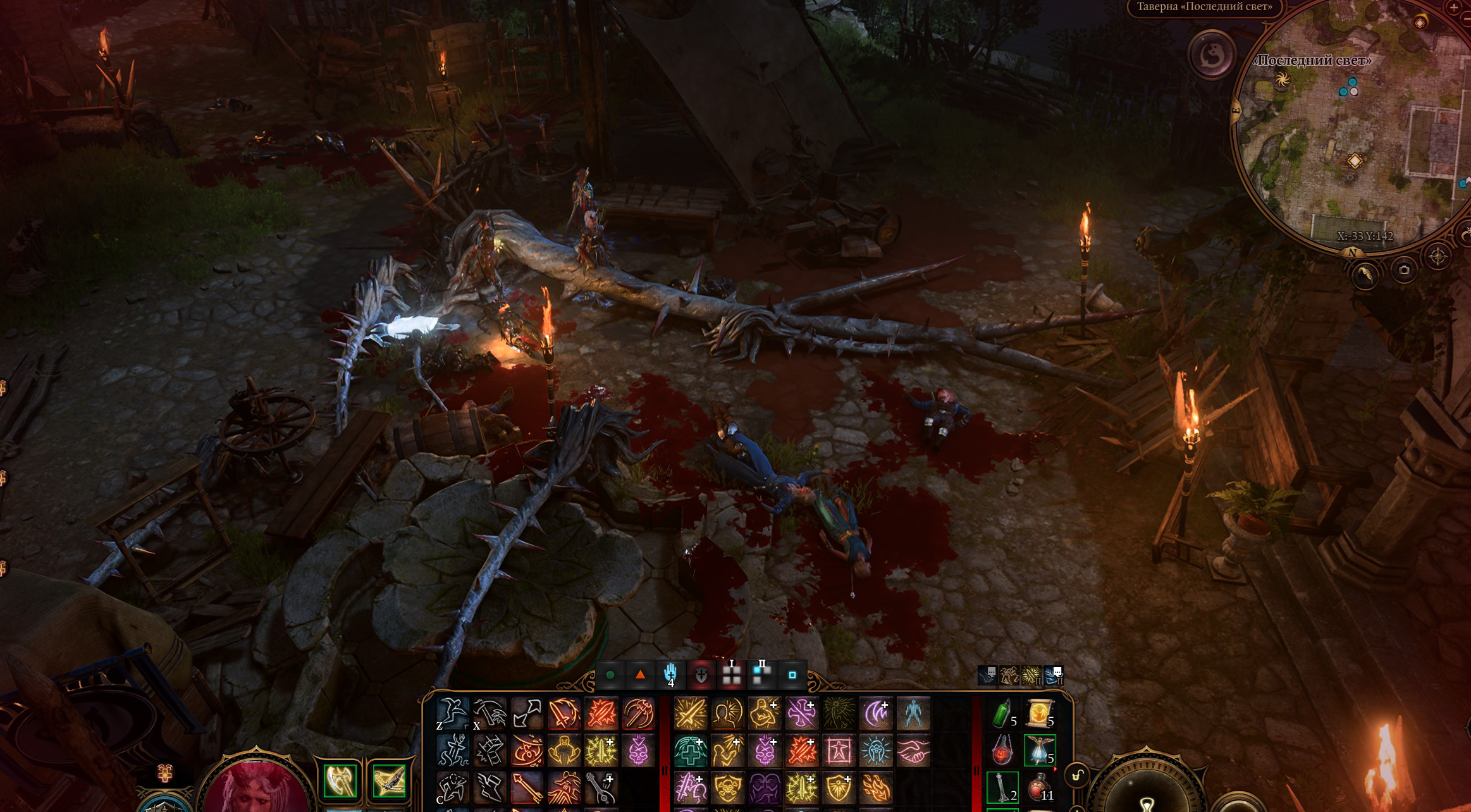 Да и даже если нет еды, ты можешь не есть и все равно восстановишь 50% ресурсов. Если нужно проскипать диалоги в лагере, то спокойно можно не есть и спамить отдыхи, ничего плохого не случится.
