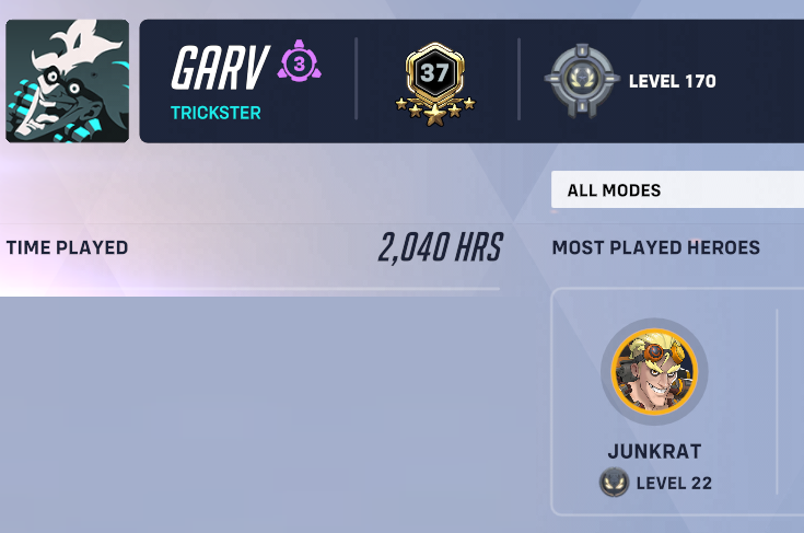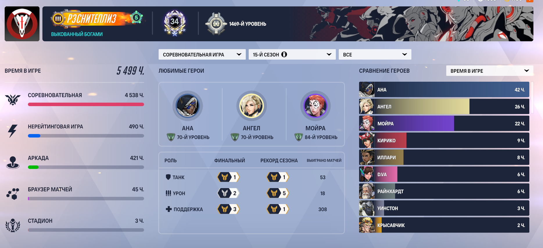 3) Рандомный третий акк который я забросил еще до выхода овервотч 2 юзался для экспериментов над персонажами. (хотя может я буду его юзать как эксперименты в Стадионе с ебанутыми прокачками чтобы не засирать стадион основного аккаунта...) - Почти 400 часов Есть еще один аккаунт но я уже забыл его таг и почту. Так же есть аккаунт на Нинтендо Свич и Плейстейшн 4, но лень смотреть сколько там наиграно.