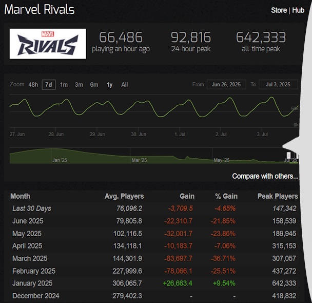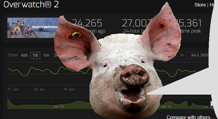 Я уверен, что, хотя скины overwatch хорошо продаются в расчете на одного игрока, количество игроков не растёт. До MR оно уже немного снижалось, а затем еще больше сократилось. Перки, а затем сезон на стадионе, привёл к некоторым скачкам, которые даже не позволили вернуть онлайн к среднему показателю за год до этого. Более того, эти всплески онлайна будут снижаться на протяжении всего сезона. В текущем новом сезоне такого скачка не было, и он уже ниже, чем в конце прошлого сезона, а ведь новый сезон только начался. И да, прежде чем кто-либо начнёт пиздеть, что это основано только на данных steamdb, я скажу пойти ему нахуй, т.к. нет причин ожидать, что база игроков в стиме будет следовать тенденциям, отличным от консолей и батленета.
