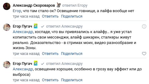 Ебать сегодня шёл с янтаря на малахит и встретил двух кренделей сержантиков, которые обсуждали чё они будут делать когда зону от мутантов зачистят. Ну я им аргументировал ответку сайгой, вроде приняли во внимание. Пришлось их конечно от двери оттащить, не закрывалась нормально.