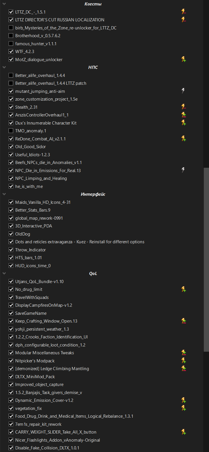 А пока пройду сюжетки в модах которые на пикриле, потом пойду качать кококосборки с копро. Я еще заметил что в отличие от сборок на аномалию, в сборках на кок часто делают свои уникальные фишки и свои сюжетные линии, как в тех же долчанах, глобал вар, стасон, а у аномали обычно это практически одни и те же аддоны, из уникального я отмечу только гаммно, антологию и рейд во мрак.