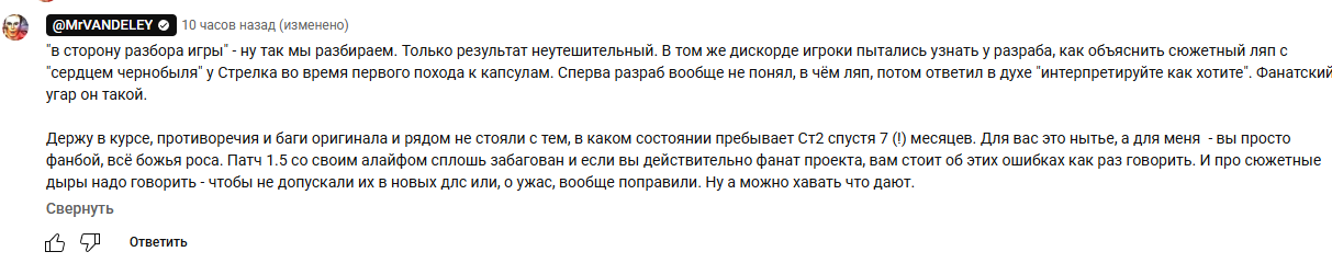 Ребят, я обижен на сталкер 2. Так сильна ждал, а потом там требования для пк повысили (а я нищий, только на статике в тыче и играю, но в основном сижу в треде и просто пизжу и спорю), потом переносили несколько раз. Потом сервера погорели, а потом рус озвучку отменили. А я ведь самый преданный фанат был, понимаете? Тут невозможно не затаить обиду, все эти события сильно расшатывают психику когда ждёшь игру, о которой мечтал. А вы играете и продолжаете обсуждать, хотя я запрещаю. ДЕлитесь впечатлениями и скриншотами, будто у вас не было всех этих переносов и отсутствия ру озвучки. А я такого отношения не потерплю! Поэтому буду запрещать и дальше, и параллельно мониторить и постить видосики с ютуба, где найдут ошибку в элайфе или где ещё, чтобы как можно сильнее скомпрометировать игру в глазах моего треда! Всем понятно?!