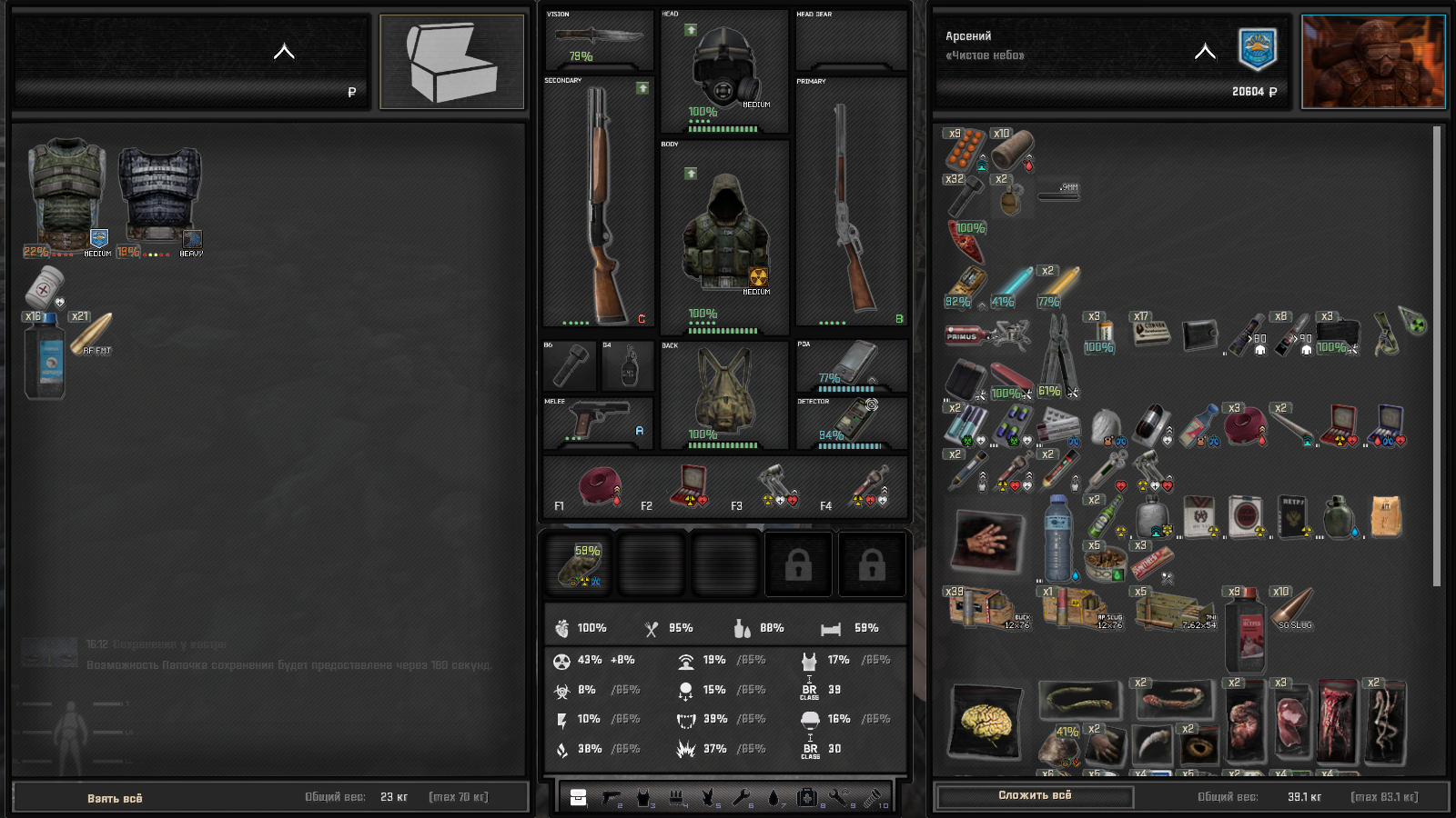 Из лута итересного пожалуй разве что имбовый дробик плюс снайперки, все остальное D тира и со стволами поломанными, пока не вычинить. Разве что ткани много налутал, это да.