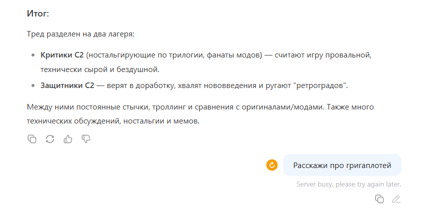 >>49993770 Да пиздец, я тут пытаюсь конструктивно вести диалог, разобрать плюсы и минусы СК2, а это тупое говно не способно осилить всего 3 предложения и только рандомно пердит гринтекстом на обрывки словосочетаний. Так ведь и реально поверить в чатгпт, серящий заместо анона.