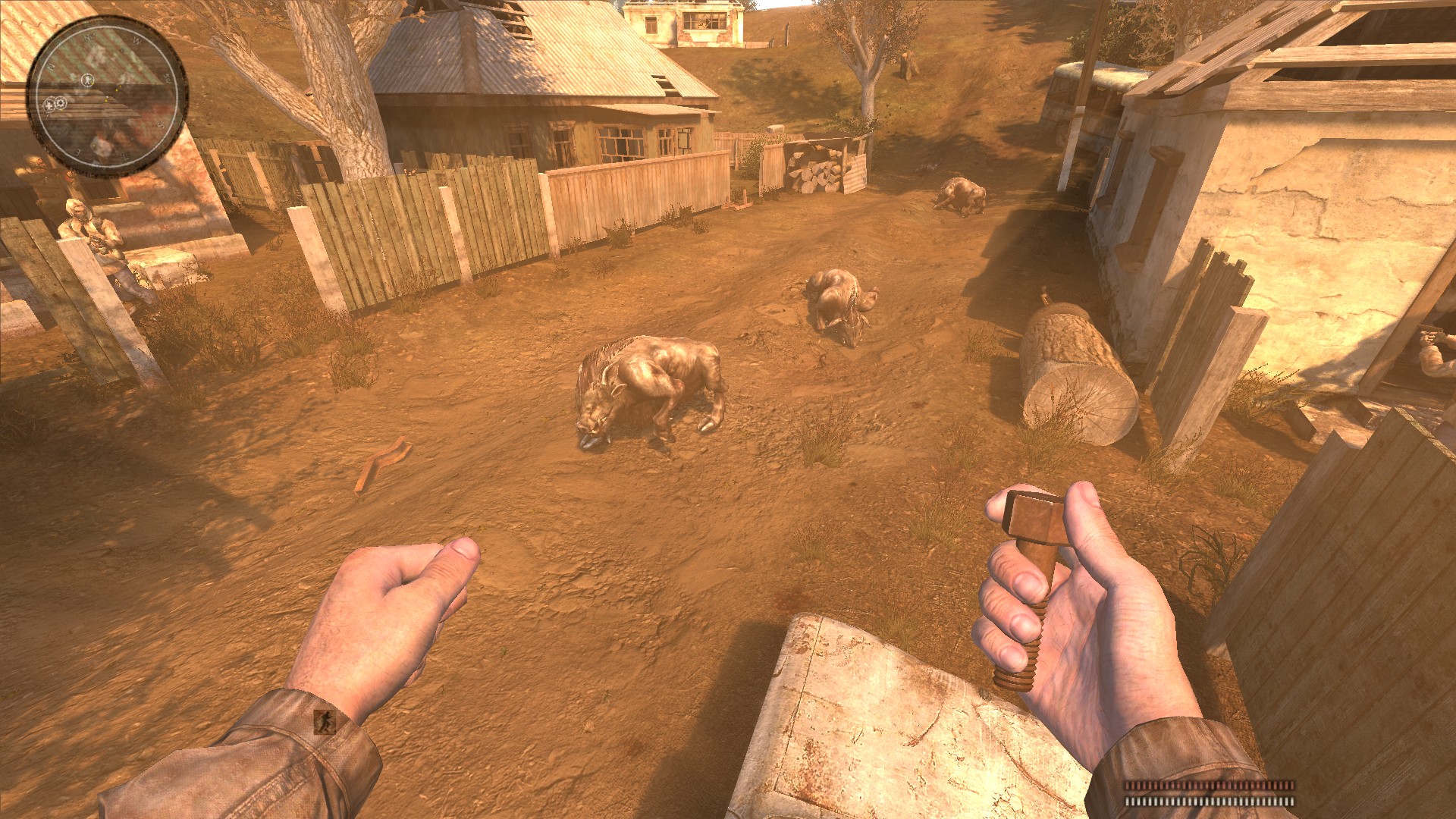 Впервые решил прикоснуться к просекторсу. Где-то видел коммент, что если кинуть болтом в сталкера, то получишь какую-то ответку. И правда: кинул болт в деревенского лоха, так на меня сразу вся деревня сагрилась и начала расстреливать. Вот это реализм, в натуре. Я думал хотя бы анимация удара по ебальнику проиграется, но чтобы так...