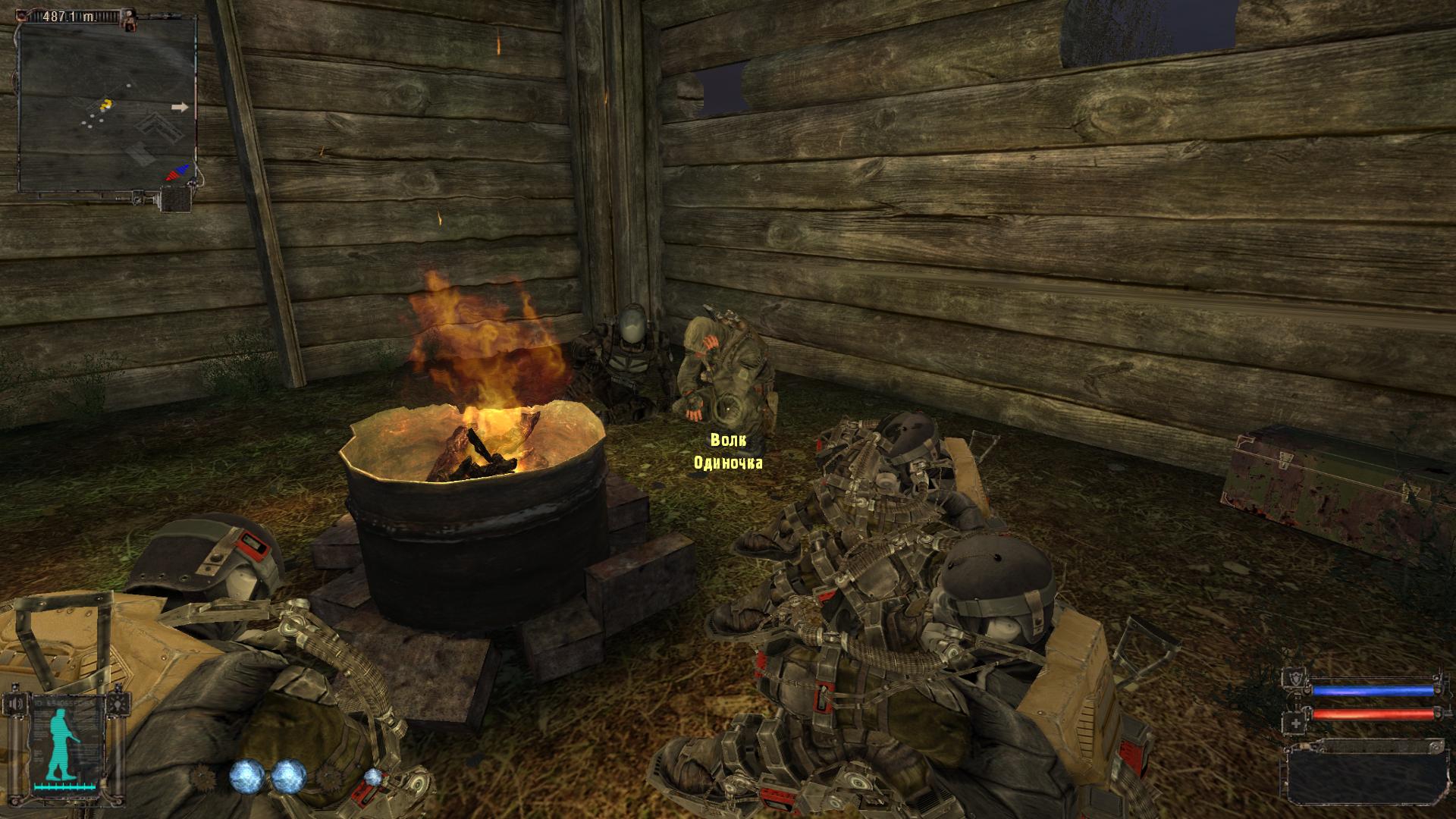 Про Волка на Милитари. Вместо костра он может занять любое свободное место на локации. Например, хутор группы Черепа. Причем, это не я их перебил, чтобы места освободить, а кровососы из деревни на них заагрились. А-лайф. А григалахта всерьез думала, что в трилогии только скрипты есть?