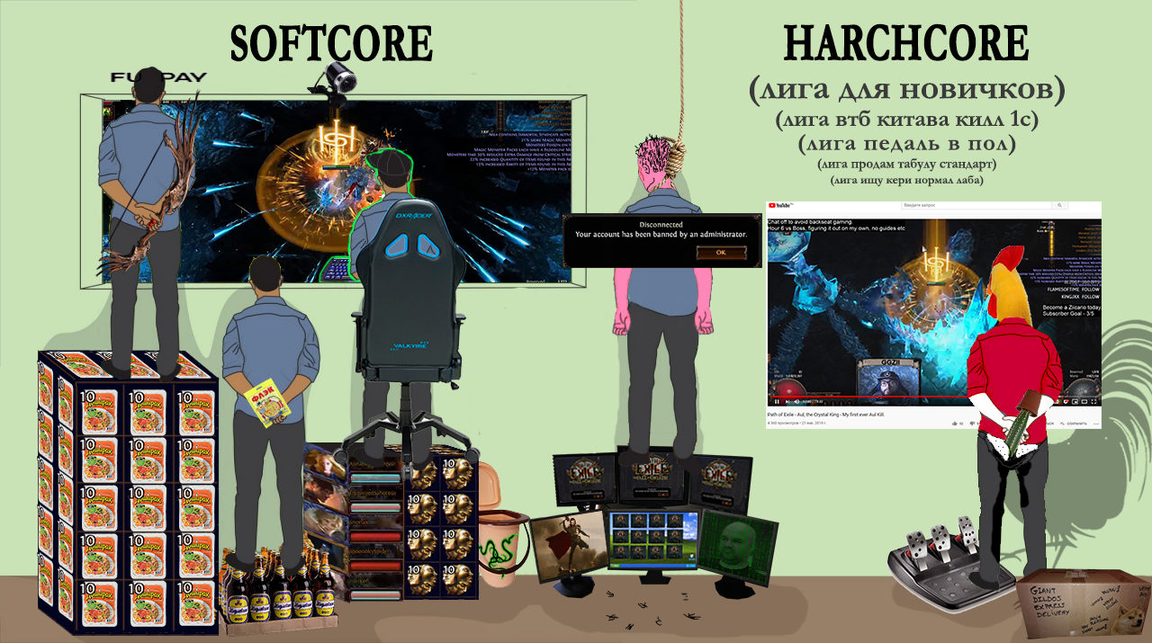 Я неделю играл на хк, въебал 15 персонажей в ряд не прходя выше 50 уровня и потом только пошёл на софт персонажу неделя, подставил меня клан великих хардкорщиков...