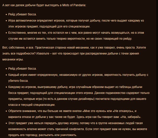 Понятно, голдбитный рак и одевание братьёв остается, это только в WoD добавили для рейдов его. Ну если у Близзардов хватит мозгов включить его в Пандарии это будет правильным решением.