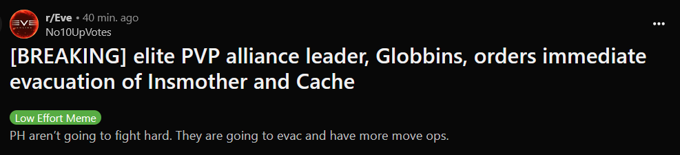 Тем временем на другом фланге Империум теряет порядка 100 миллиардов ISK за последний день, при этом экономическая ситуация Брейвов едва может быть лучше чем у Гунов. Horde может позволить себе обменять Delve на Insmother без серьёзного морального ущерба.