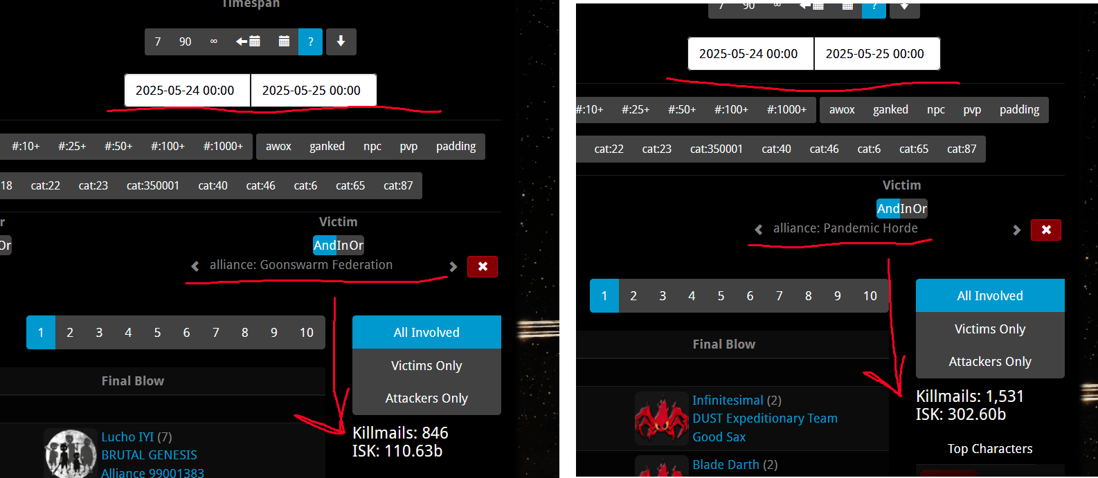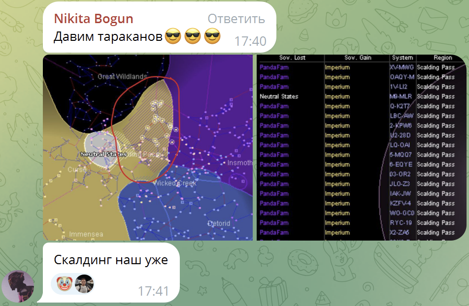 Любопытно, что несмотря на весь хайп, а с участием Mittani он был особенно громким, Goon'ы не добивались ранее существенного продвижения. Более того, уже менее чем через две недели им приходилось отступить. Вспомним времена FI.RE и их компании против нас.