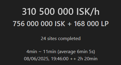 Прилетел, сел, сделал за 5 минут, получил свои 110кк даже на самом нищем лп. На норм лпшках 300кк.
