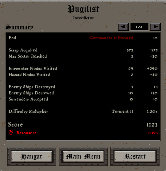 Олсо до последнего босса долетел легчайше тупо задочив кормбль под абордаж - повезло на модули, был модуль с 5-22 дамага команде врага на старте боя и модуль на дополнительные 15% лечения при пыжке. Плюс система которая станит всех в комнате. Плюс ведьма со спеллом на 15 дамага по комнате. Короч никто даже вякнуть не успевал.