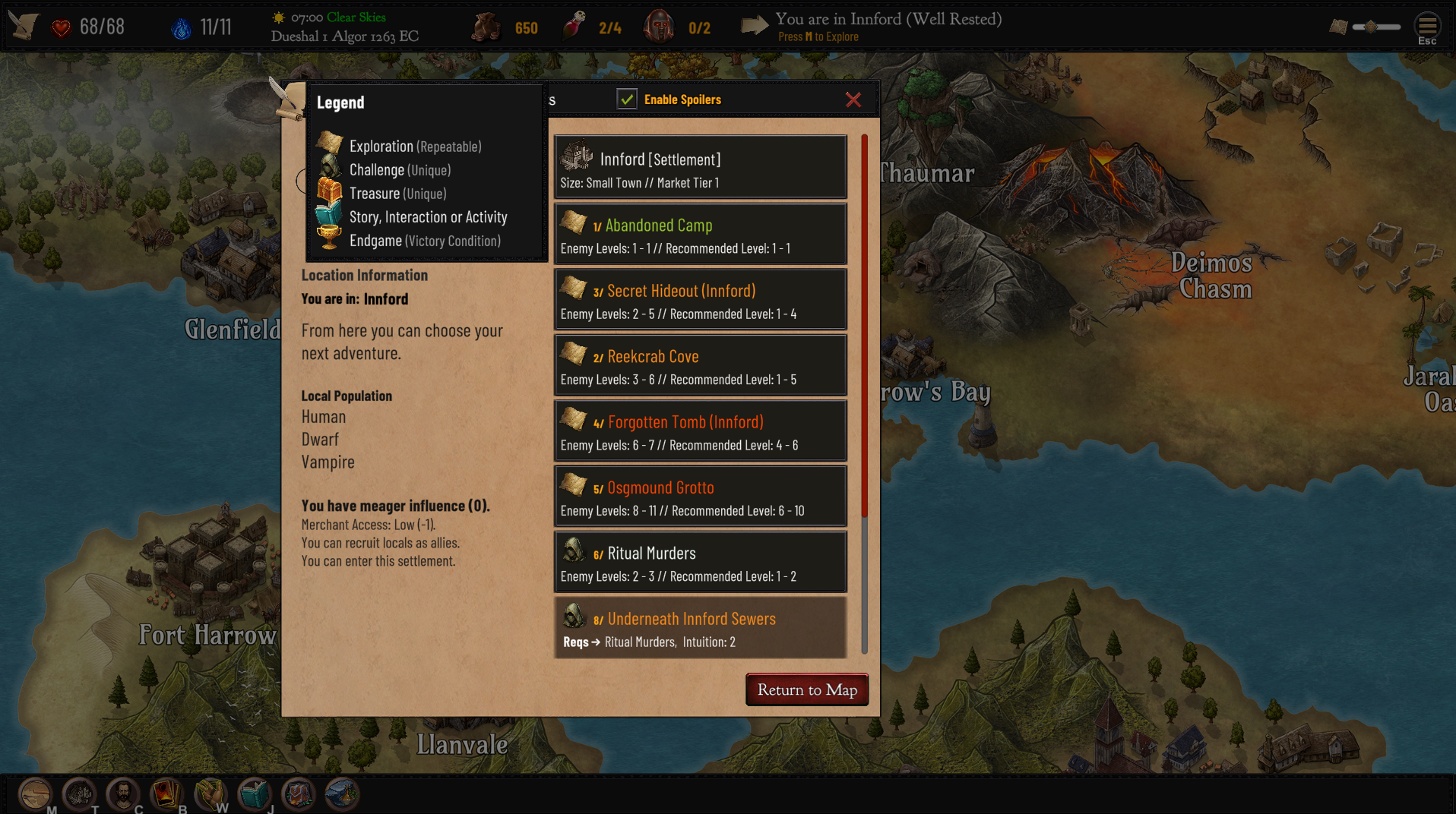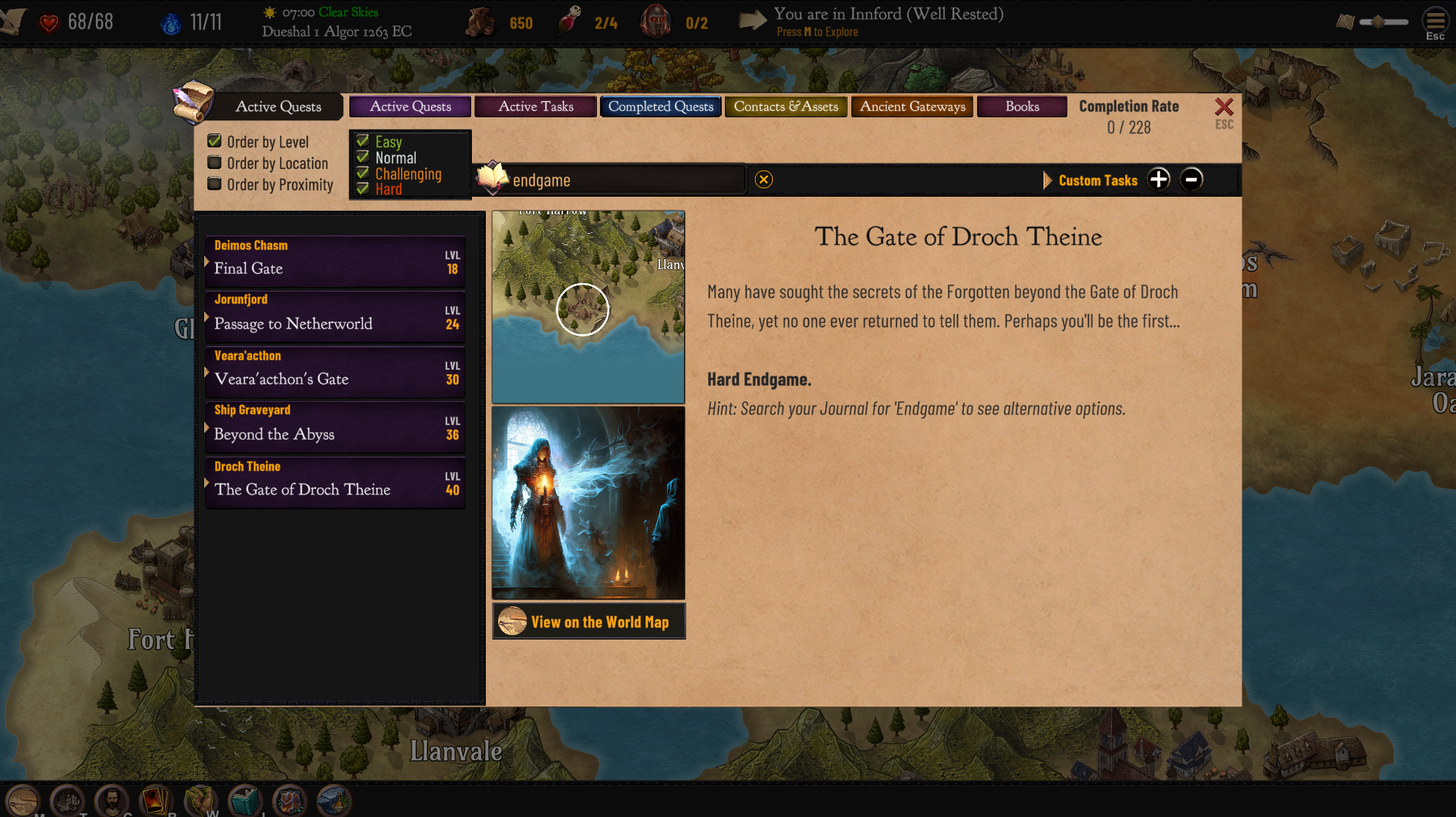 >>49908452 Тут главное список всех локаций, чтобы ты не лез в бесконечно генерируемые фарпорталы с высокоуровневыми врагами ради экспы и лута когда ещё обычные локации не зачистил. Ну а в лабиринте ты же видишь обычный у тебя вариант или альтернативный с дырками в полу, если видишь дырки можешь пойти в другой данж и потом вернуться.