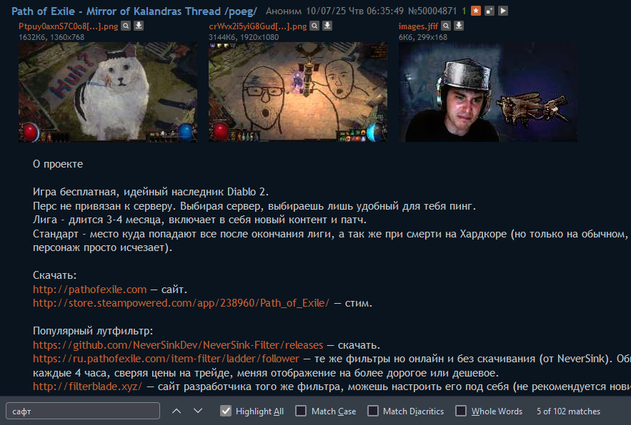 >>50017575 >а че он епта пивная хуйня ты вообще пытаешься вникать в механики игры или ты просто платишь 500 рублей в середине лиги и собираешь билды? найс сравниваешь ехп билда ес стака трикстера и деда пениса я хуею бля