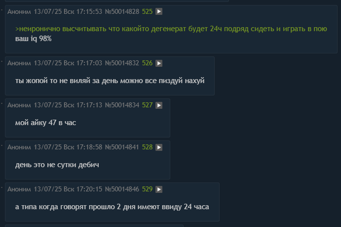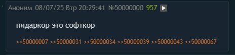 >>50013269 >80% постов ну ваще там было 30% если не меньше потому что еще 2-3 шизика срало на таком же уровне остальные наверняка тоже хотели поиграться с личностями в своей голове но поняв что их спалят просто сидели ридонли и терпели