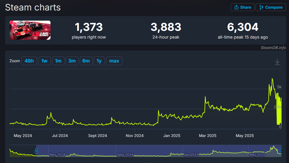 > Проходной симо-игрулей с парой классов. Нихуя себе самовнушение. Прогресс ле мана за год даже на графиках игроков виден. А их там уже по пикам - от четверти до трети игроков ирки и АС. Шо там с прогрессов у команды хуесосов, которую надо "понять и простить". Ой.