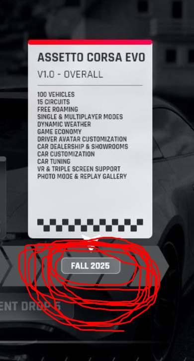 Первая корсочка тоже целый год была в раннем доступе. Не помню, вот честно, как её тогда растрпостраняли. С 13 по 14г. Но и потом. До релиза первого дримпака СПУСТЯ ГОД после релиза. С Петлей и частью знаковых тачек - это было такое себе поделие. Напомню. Что ни визуальных красот. Ни физон-фич типа динамической погоды, смены времени суток - не было ни до ни после этого релиза дримпака.