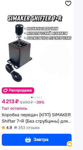 >>50022185 Шота фоном запустила его видос. Он так облизывал R3 прям пиздец. Еще и говорил, что 30к - это ахуеть как выгодно. Сириусли? Щас же реально можно взять PXN V10 Pro за 14к. Это же в 2 с лишним раза дешевле и явно не во столько же раз хуже, если вообще хуже. Кстати, почему в "гайде" нет? Тут какой-то анон бу логитек с мешалкой за 20к собирался брать, когда можно взять новый дд V10 pro + мешалка от них же, дешевле 20к. Что за культ логитека? Зашла еще этот сайт посмотреть, который он рекламил. Ебать, там цены, конечно, ребята. Moza R16v2 штурвал KS и педали CRP2 за 135к не хотите? Или Moza R16v2 штурвал FSR2 и педали CRP2 за 177к? Это при том что у меня Moza R21v2 штурвал FSR2 и педали CRP2щас едут ~125к вышли.
