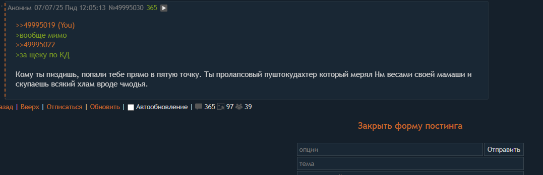 >>50026931 >Не видел Это характерно для малолетнего долбоёба.