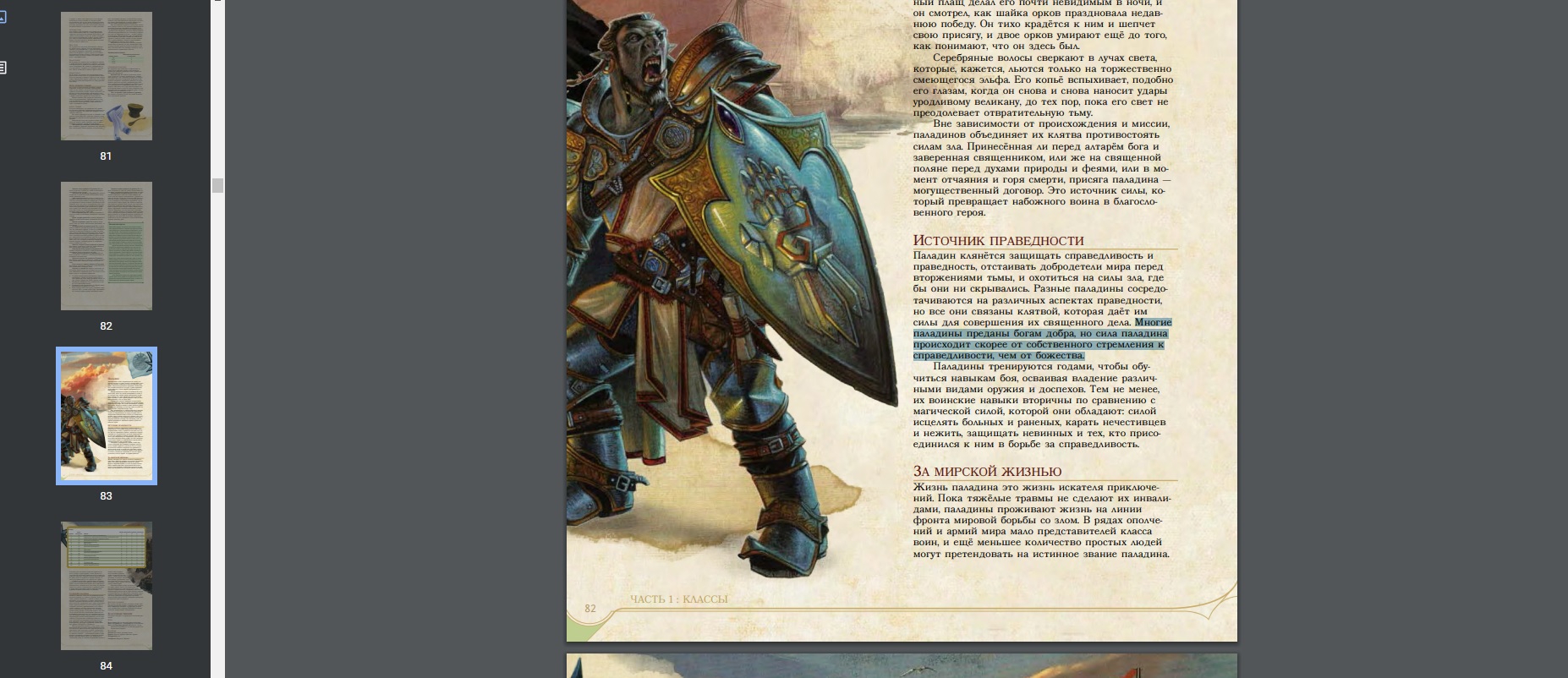 >>50025470 Я тебе прочитаю и переведу, мне не сложно. В четвертом абзаце первой части написано, что источник силы паладина это его клятва, не важно перед божеством он поклялся или нет. Первый абзац второй части повторяет сказанное выше и добавляет, что даже несмотря на служение доброму божеству, сила паладина отчасти исходит из приверженности правосудию.