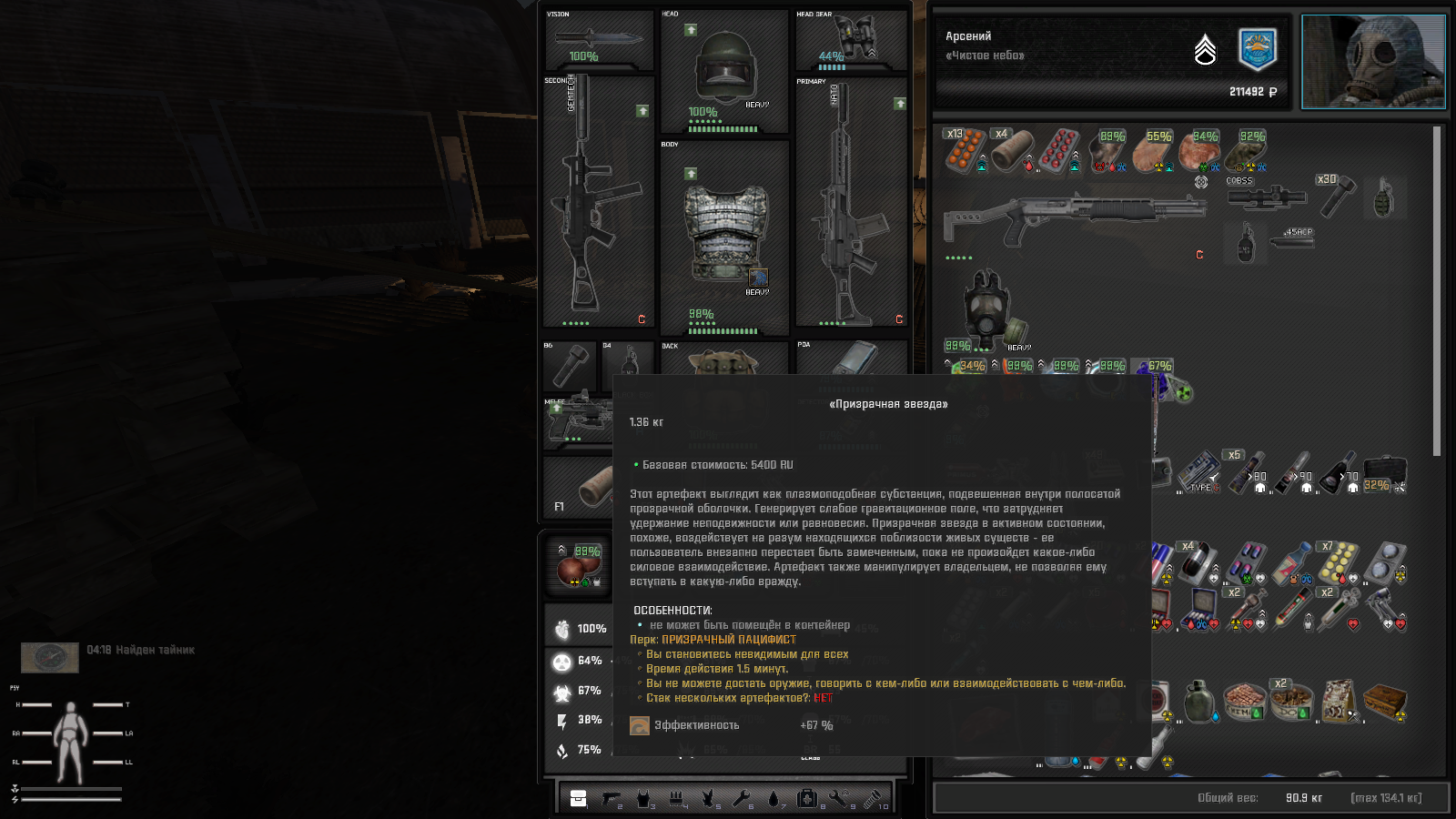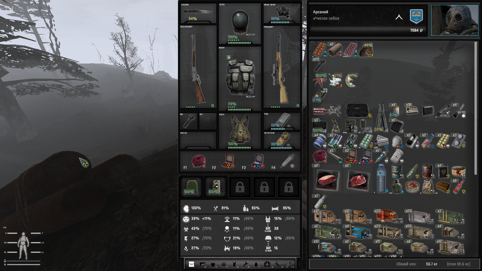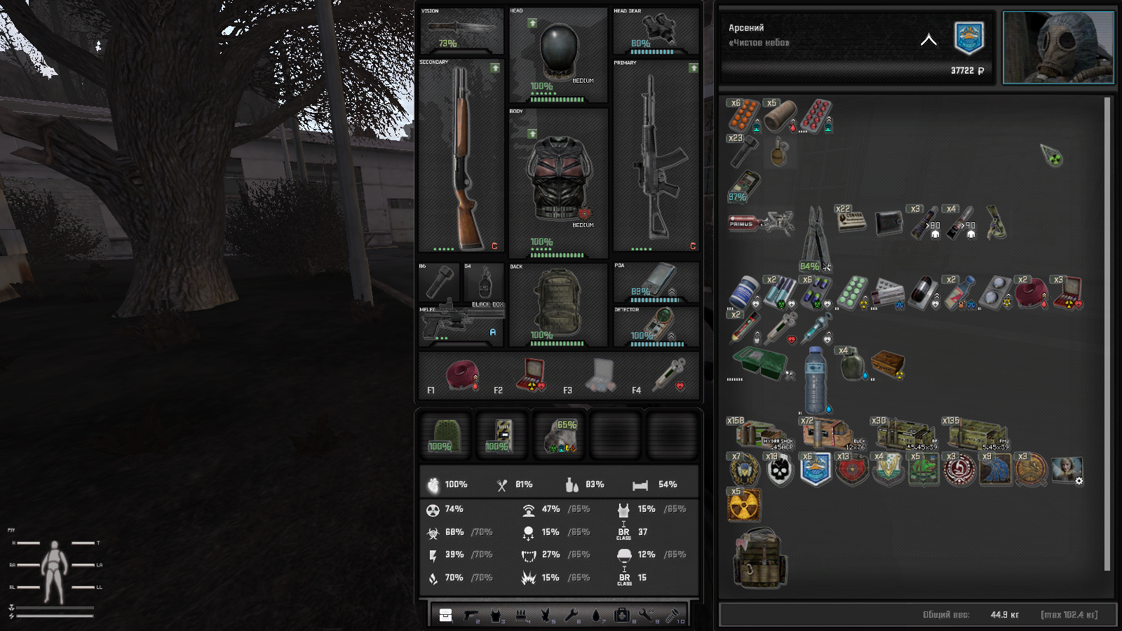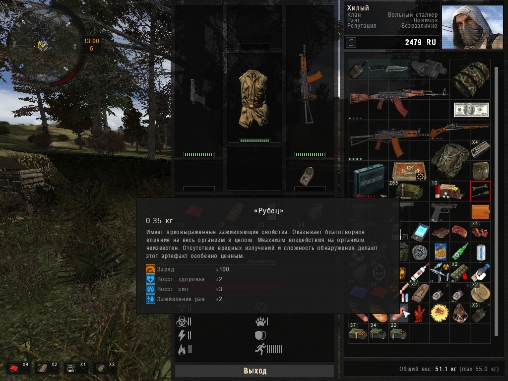 А что про пользу? Ну, в начале игры он очень даже полезен. Потом - зависит от веса. Я сейчас таскаю с собой либо один ствол для людей, а другой - для мутантов, либо для ближних и дальних целей. В 50 кг вмещается. Как сделать медицину и еду полезными? Тут нужен баланс. С одной стороны, "плюсики" а-ля Квака, для Сталкера выглядят неуместно. С другой - отлеживаться сутки за каждый потерянный процент здоровья - выглядит немного похоже на реальность, но такого пока даже в НЛЦ нет