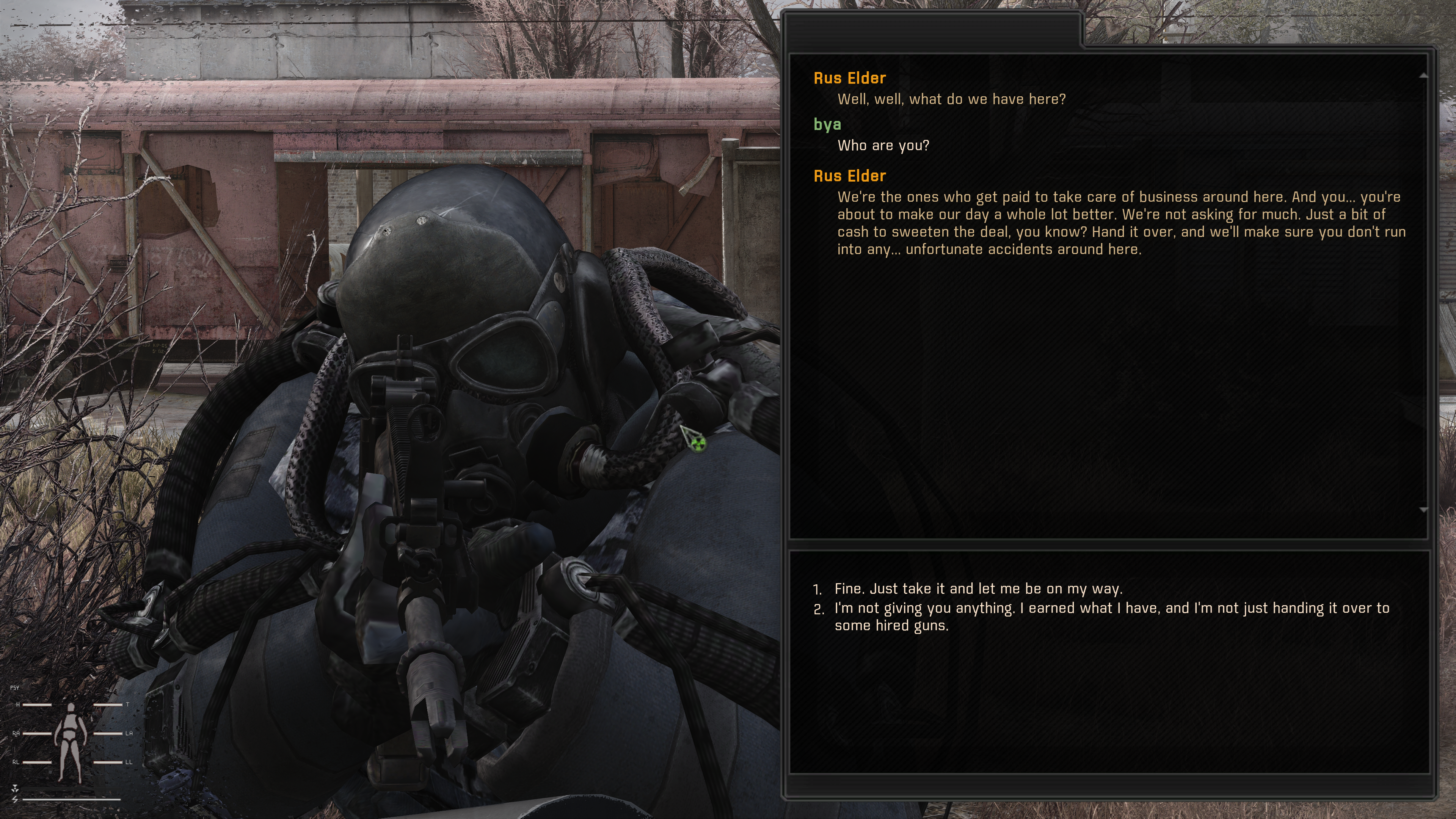 Ребятки, всё замечательно. Главное было дожить до любого броника помимо курточки, в нём хотя бы выстрела 3 можно выдержать из ака и успеть хоть что-то сделать. Нашёл Доктора в его пещере хуй не предлагал, забрал у него ключик от гостиницы и он надавал кучу квестов на сбор документов влабах. Сейчас дочищаю квестики на болотах с парнями и двигаюсь на агропром, в подземелье В целом, чувствую себя уверенней с абаканом в нормальной броне. Ещё бы прицел ПСО найти для большей уверенности, торговец чиена не продаёт такой