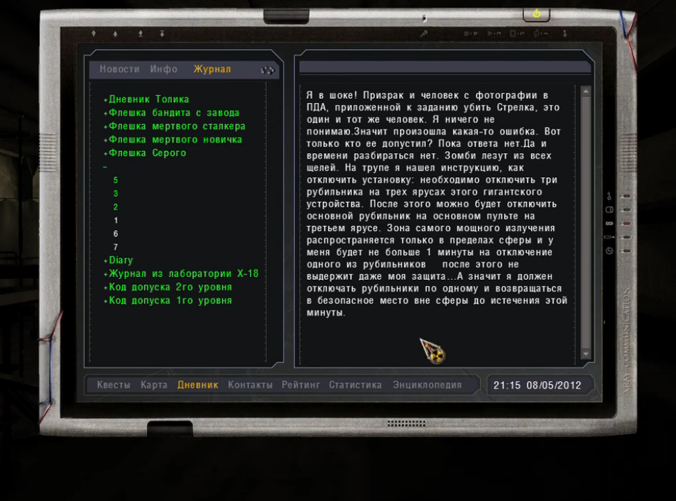 Все таки жэ36к охуенный ствол, можно нацепить дальник и нормально отстреливаться, вешает хеды как надо, 86 точности вполне хватает, учитывая что я его грейдил под ближний бой. Я бы хотел сказать, что я идальше дефал свалку от бандосов с позиции снайпера, но ебанул выброс и все экстренно ломанулись в укрытию, пришлось менять прицел на калиматор. Впрочем, я обоссался, т.к. вся эта хуйня не выглядела как надежное укрытие и выжрал анбаиотик. Но Птеренко блядь засчитал проеб миссии на деф этой помойки, сука, ему ведь не обхяснишь, что вся хуйня сорвалась из за выброса, вот пидор.