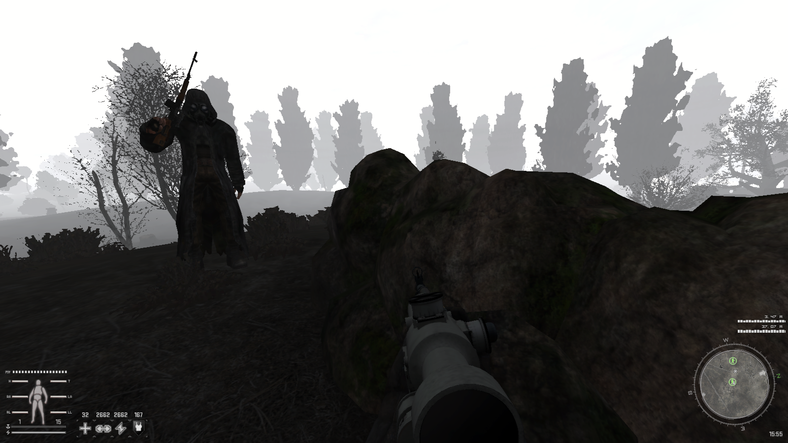 Помните Игорька Мадеру? Вот что с ним сделали выброс плюс два излома. Заглянул в лощину за трупами наймитов, ну и разумеется ебанул выброс, добежал до туннеля, пацана приняли наверху, хотя я командовал ко мне бля. Еще с одиночками (лонерс) поцапался, во время выброса дал в кусты какому то додику с калашем, это был одиночка, потом пришлось его другана застрелить нахуй, неудобная ситуация. Но я обосрался, что это баунти сквад, ведь когда мой наемничий напарник хуярил одиночек это все мне в минус репу считалось, так что хуй знает, перестраховался.